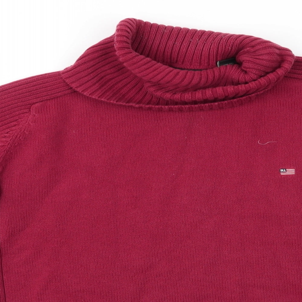 Mens Red Roll Neck Cotton Pullover Jumper Size XL