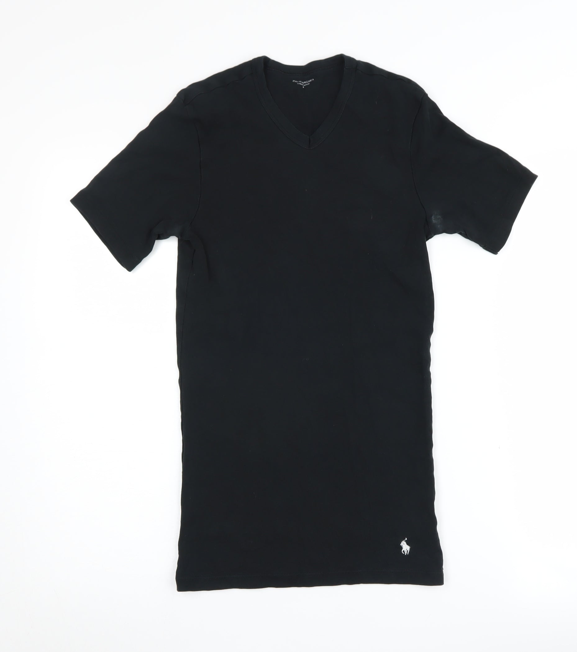 Discover casual elegance with this Polo Ralph Lauren women's black V-neck T-shirt. Crafted from 100% cotton, this classic tee offers a soft, breathable feel perfect for everyday wear. The solid black colour is both versatile and chic, making it an ideal addition to any wardrobe. Designed in a flattering classic fit, this tee pairs easily with jeans, skirts, or shorts for a laid-back, yet stylish look. Whether you're heading out for brunch or lounging at home, this T-shirt provides comfort and effortless style throughout the seasons. Despite its excellent condition with minor signs of wear, it remains a wardrobe staple that retains its charm and wearability. Elevate your casual wardrobe with this must-have Polo Ralph Lauren piece.