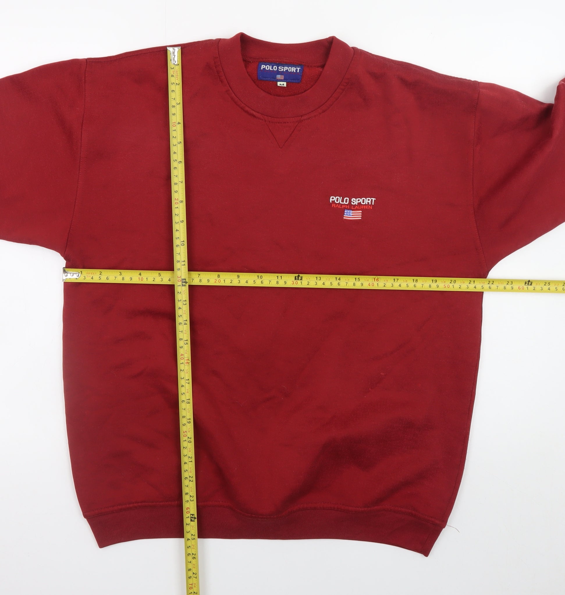 Step into timeless style and unmatched comfort with this Polo Sport Ralph Lauren men's sweatshirt in bold red. Crafted from a soft cotton blend fleece, it provides a premium feel and reliable warmth that’s perfect for the colder months. The sweatshirt features classic long sleeves, ribbed cuffs and hem, and a crew neckline for a refined yet casual silhouette. The front proudly displays the iconic Polo Sport embroidered logo and American flag motif, a hallmark of the brand’s sporty heritage and high-end design. With its pullover construction and regular fit, this sweatshirt delivers both comfort and versatility, easily pairing with jeans, chinos, or joggers for a polished casual outfit. Ideal for autumn and winter wear, it offers the ideal mix of breathability and insulation. This piece reflects the enduring appeal of Polo Sport with a vintage flair that’s both collectable and wearable. In excellent pre-owned condition, showing only minimal signs of light wear, it has been well cared for and retains its original rich colour and shape. Perfect for casual, outdoor, or leisure activities, this sweatshirt is a wardrobe essential for the modern man who values comfort without compromising on classic style. A staple from one of Ralph Lauren’s most recognisable lines, it’s an effortless way to showcase quality and understated luxury. Don’t miss this chance to add a touch of authentic Polo Sport tradition to your collection.
