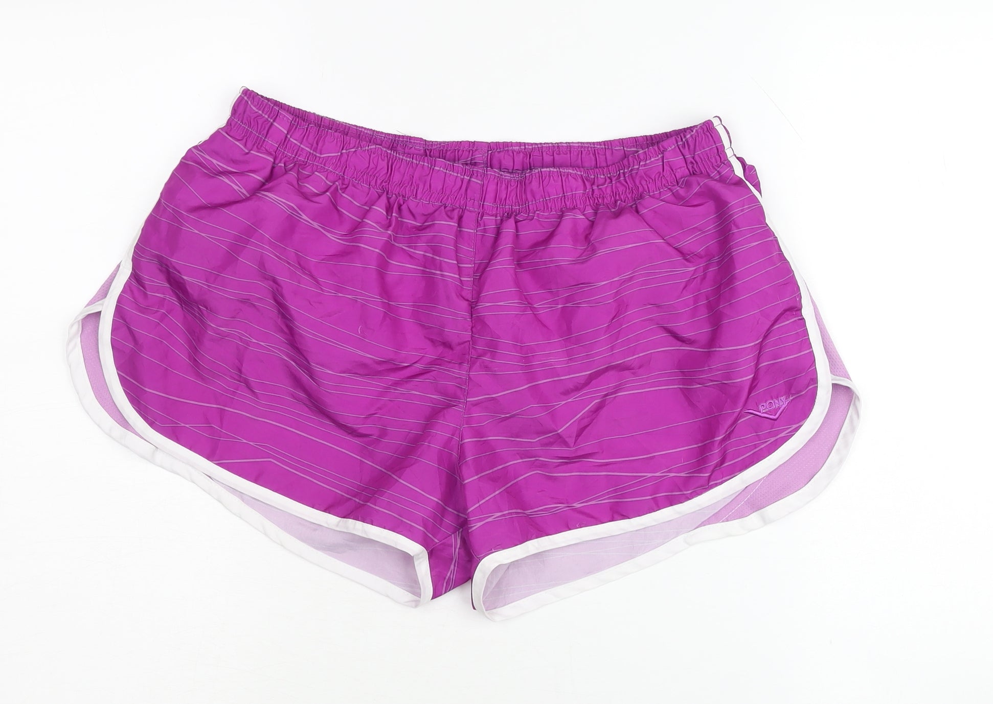 These PONY Women's Athletic Shorts are perfect for your active lifestyle. Made from lightweight and durable 100% polyester, they are designed to keep you comfortable whether you're jogging, playing sports, or just going about your day. The vibrant purple colour with a chic striped pattern adds a pop of style to your workout wardrobe. Featuring an elastic waist, these shorts offer a comfortable fit while allowing for maximum mobility. They're machine washable for easy care, making them an ideal choice for regular wear. Suitable for summer activities, these shorts are a great addition to any activewear collection. The shorts are in excellent condition with no visible defects, ensuring they look as good as new. Whether you're hitting the track or the gym, these shorts provide the functionality and style you need. Don't miss out on this versatile activewear essential!