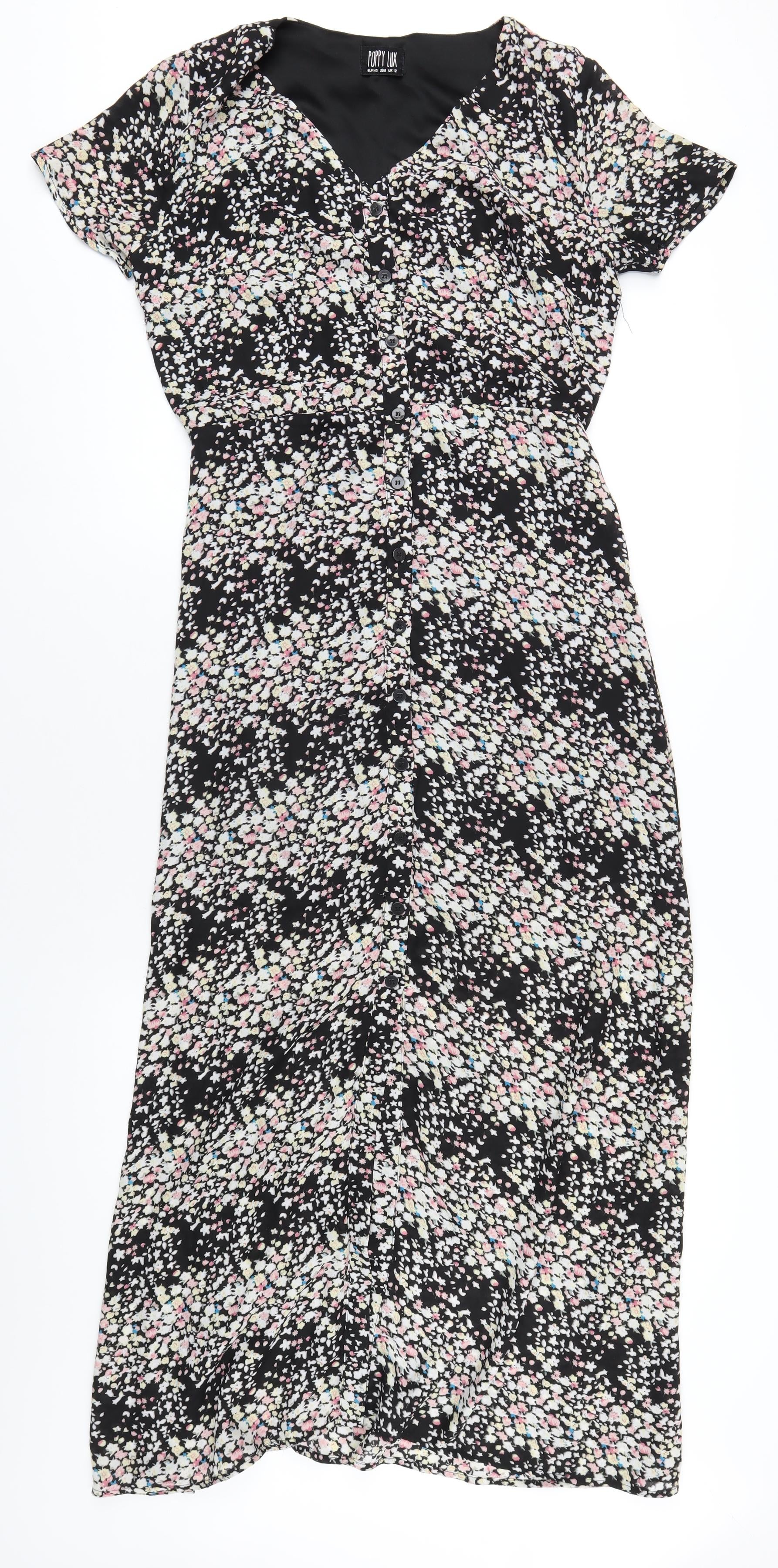 Womens Multicoloured Floral Polyester A-Line Size 12 V-Neck Button