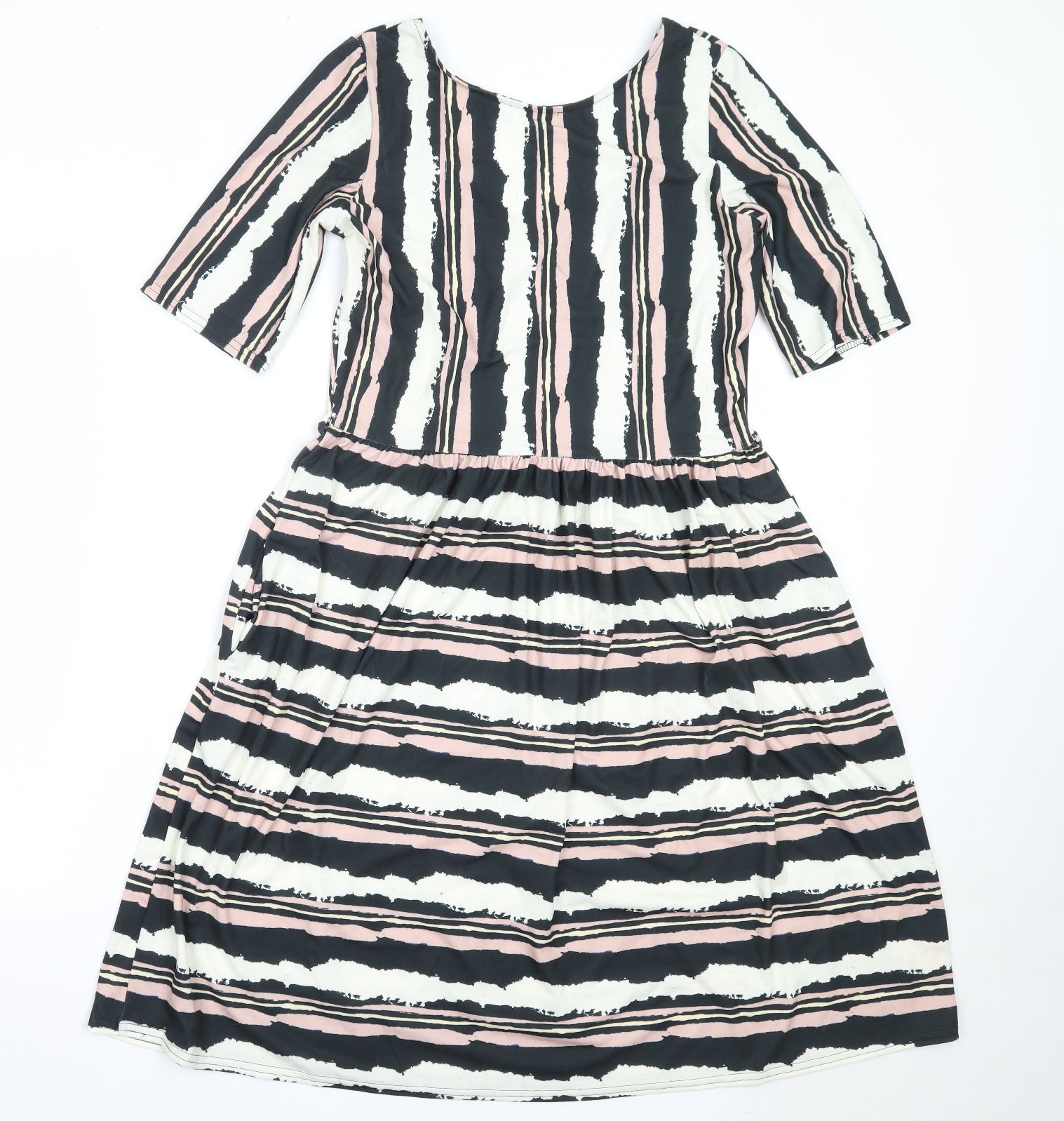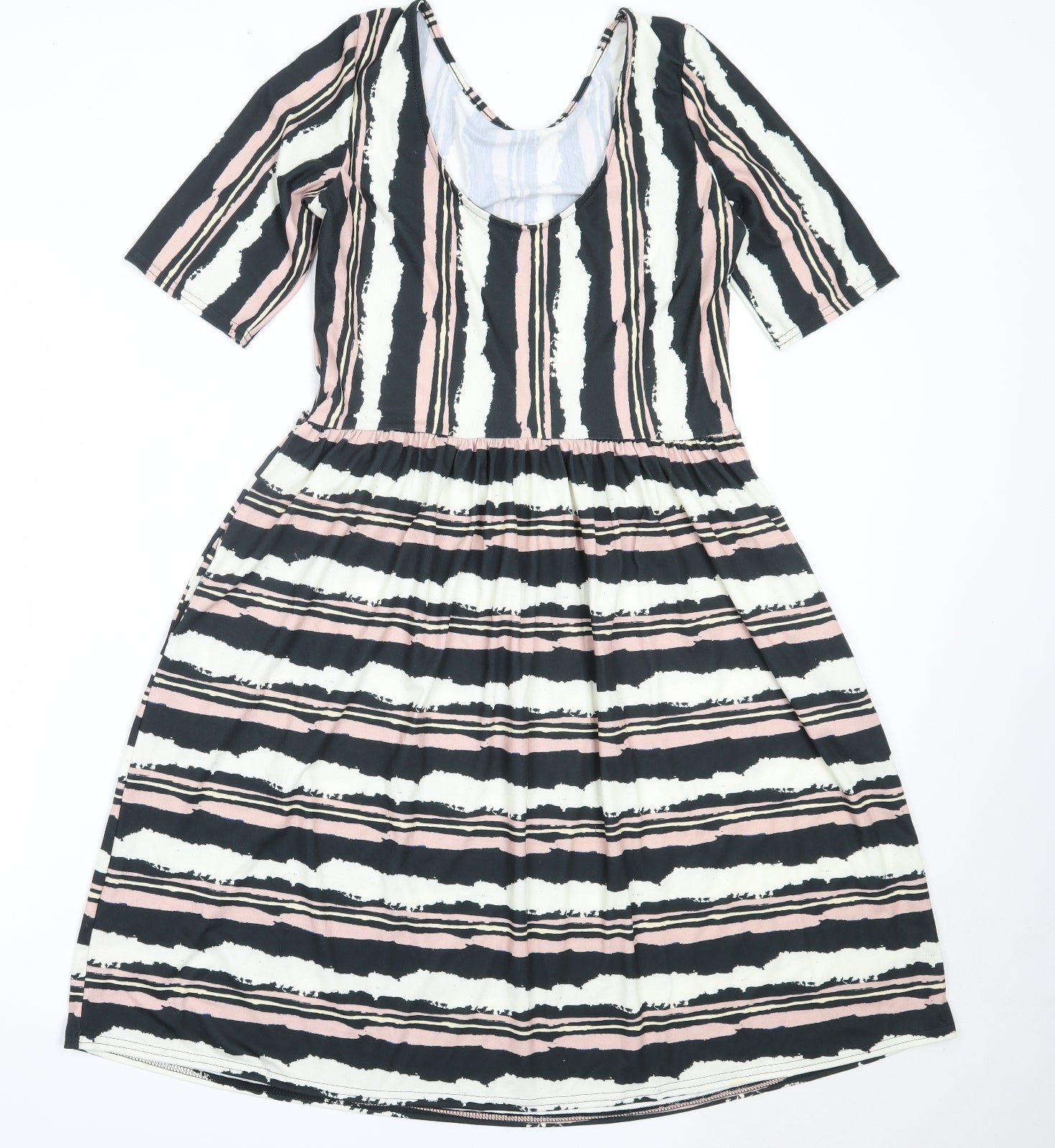 Womens Ivory Striped Polyester Fit & Flare Size 10 Round Neck