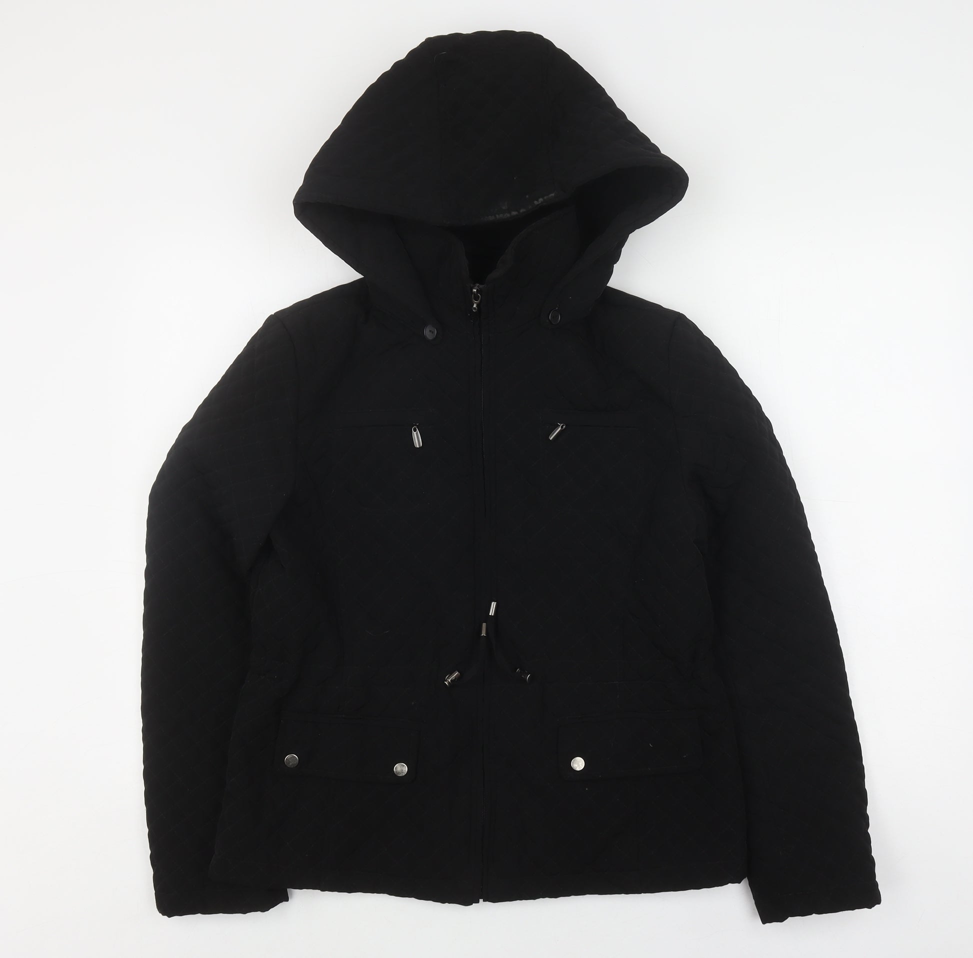 Introducing the Portrait Women's Black Quilted Hooded Jacket, the perfect blend of style and functionality to combat chilly days. Crafted with a sleek quilted design, this jacket is your go-to for a classic, yet contemporary look. Made from 100% polyester, this jacket promises durability and warmth. The full zip closure and hooded design offer both practicality and a fashion-forward flair. With easily accessible pockets, you can keep your essentials close by, whether it's a daily commute or a casual stroll. Its mid-length fit provides additional coverage and comfort, making it ideal for autumn and winter seasons. The regular fit ensures ease of movement, while the clean, timeless design complements any wardrobe. Machine washable for your convenience, this jacket combines supreme comfort with hassle-free garment care. Ideal for a casual, everyday setting, this classic piece will seamlessly fit into any attire while keeping you warm and stylish. Perfect for those looking for an understated yet sophisticated outerwear option.