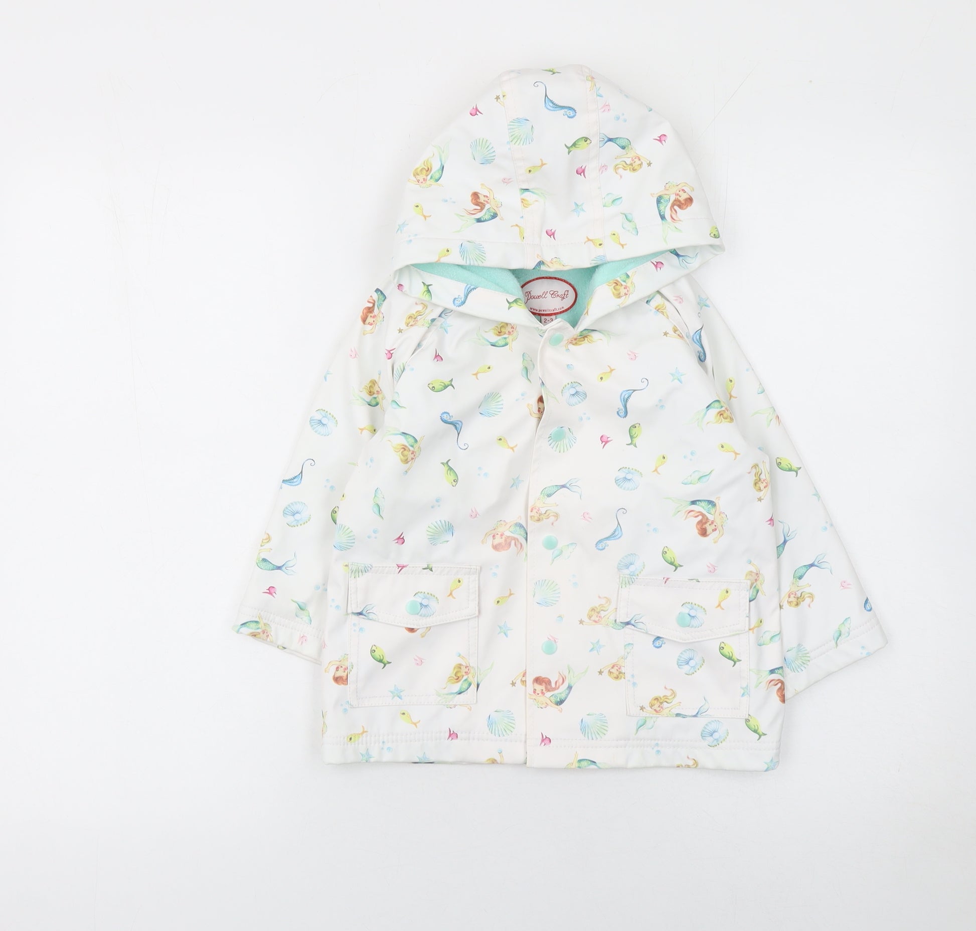 Girls White Mermaid Waterproof Hooded Rain Coat 2-3 Years