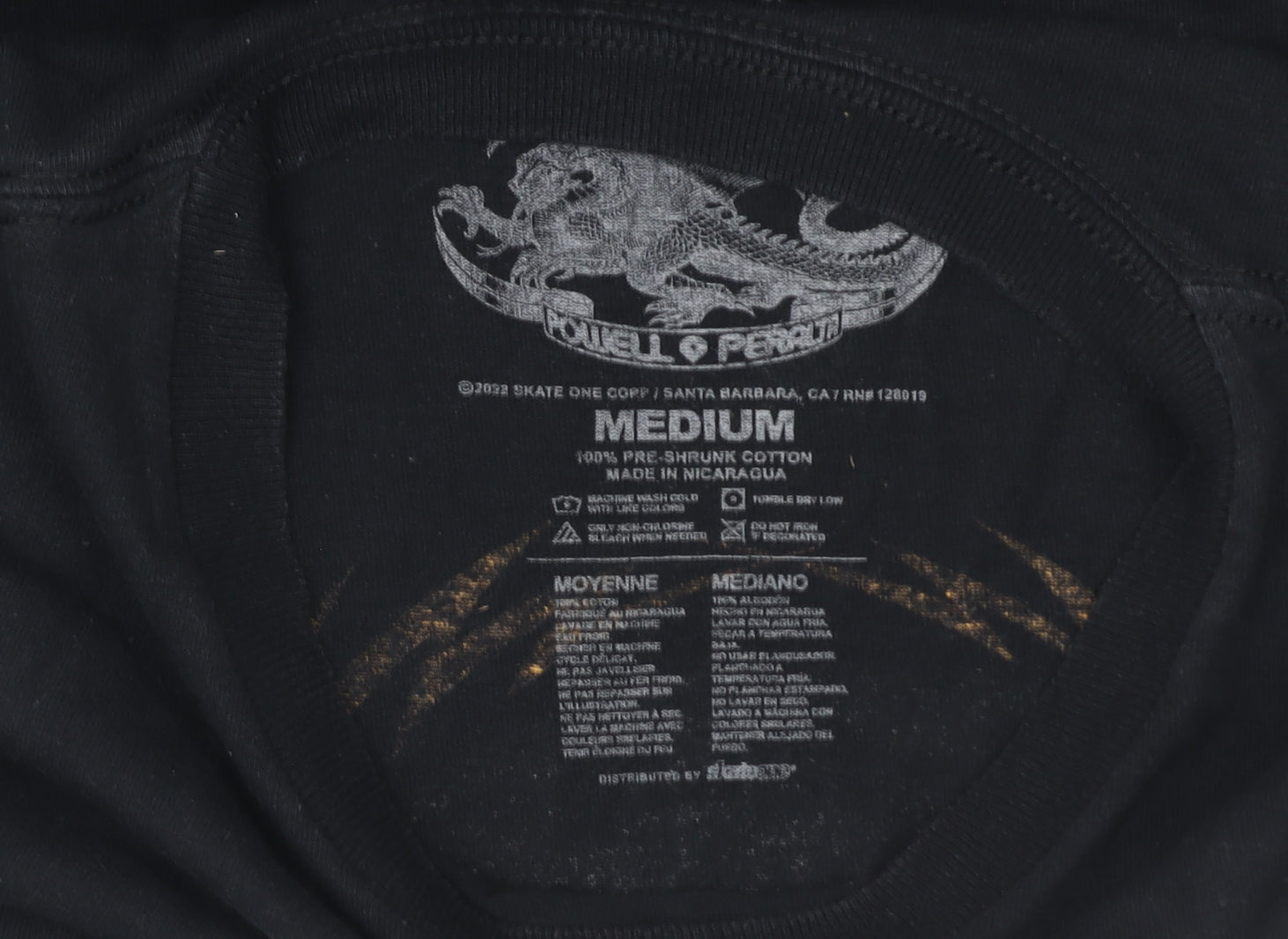 This Powell Peralta men’s black short sleeve T-shirt delivers an iconic design that embodies the culture of skateboarding and streetwear. Crafted from 100% pre-shrunk cotton, the soft jersey fabric offers durability and lasting comfort, ideal for everyday wear or casual skate sessions. The shirt’s standout feature is its vivid graphic artwork—the legendary skull and snake design that represents Mike McGill, one of skateboarding’s most recognisable symbols. The bold artwork printed on the back makes a striking impression, while the smaller matching chest logo maintains a balanced, stylish look from every angle. Designed with a comfortable crew neckline, this T-shirt ensures a relaxed fit that suits a range of body shapes. Breathable and lightweight, it’s perfect for spring, summer, and autumn wear. The preshrunk nature of the cotton fabric helps maintain its shape after washing, while the strong seams and soft handle provide enduring quality. This piece is in very good pre-owned condition with light, natural fading that adds a touch of authenticity without detracting from its appeal. No major signs of damage are visible. Suitable for everyday casual wear, street style, or skateboarding sessions, the T-shirt pairs easily with jeans, shorts, or joggers to create a versatile outfit. Powell Peralta, established in California, is synonymous with skate heritage, and this design captures that spirit perfectly—ideal for those wanting a statement piece that honours the roots of the skate culture. Whether you're a long-time Powell Peralta collector or simply looking for an eye-catching tee with a legendary edge, this men’s medium T-shirt embodies individuality and attitude. It’s a timeless graphic tee that transitions seamlessly from the skate park to social occasions. Add a piece of skating history to your wardrobe today with this high-quality Powell Peralta graphic shirt.