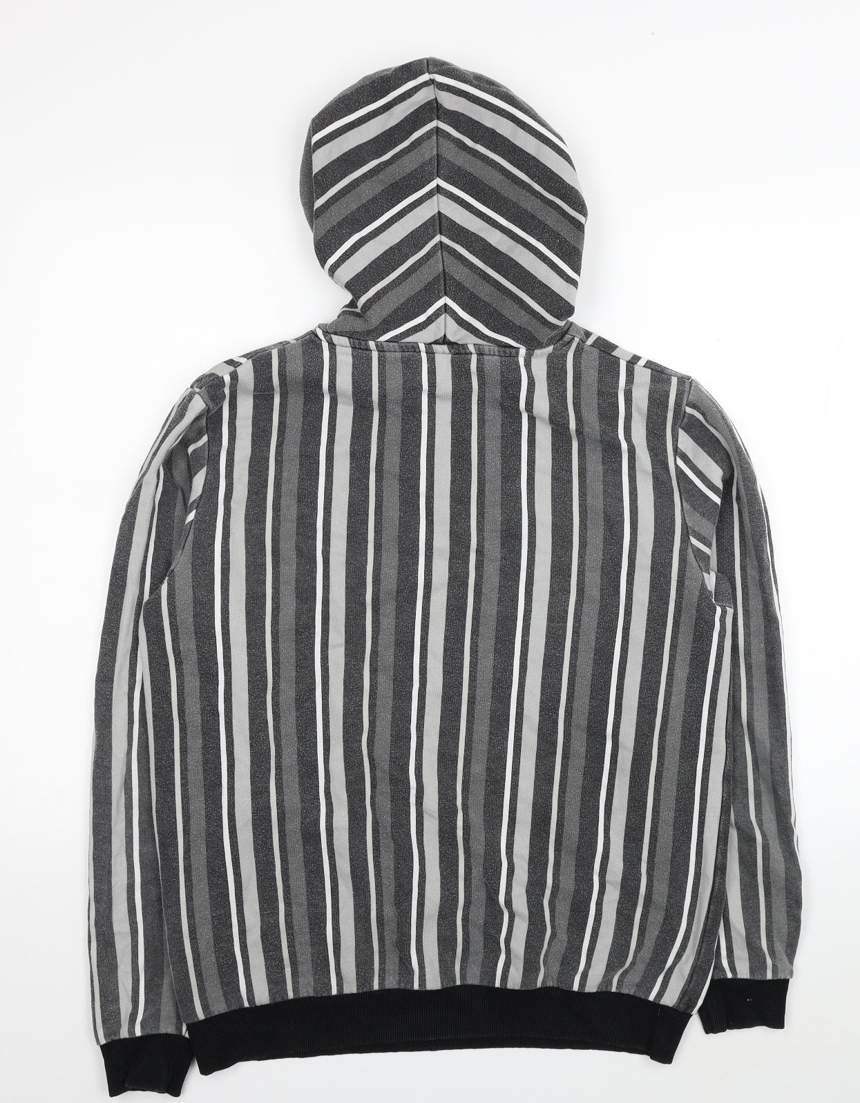 Mens Grey Striped Cotton Pullover Hoodie Size M
