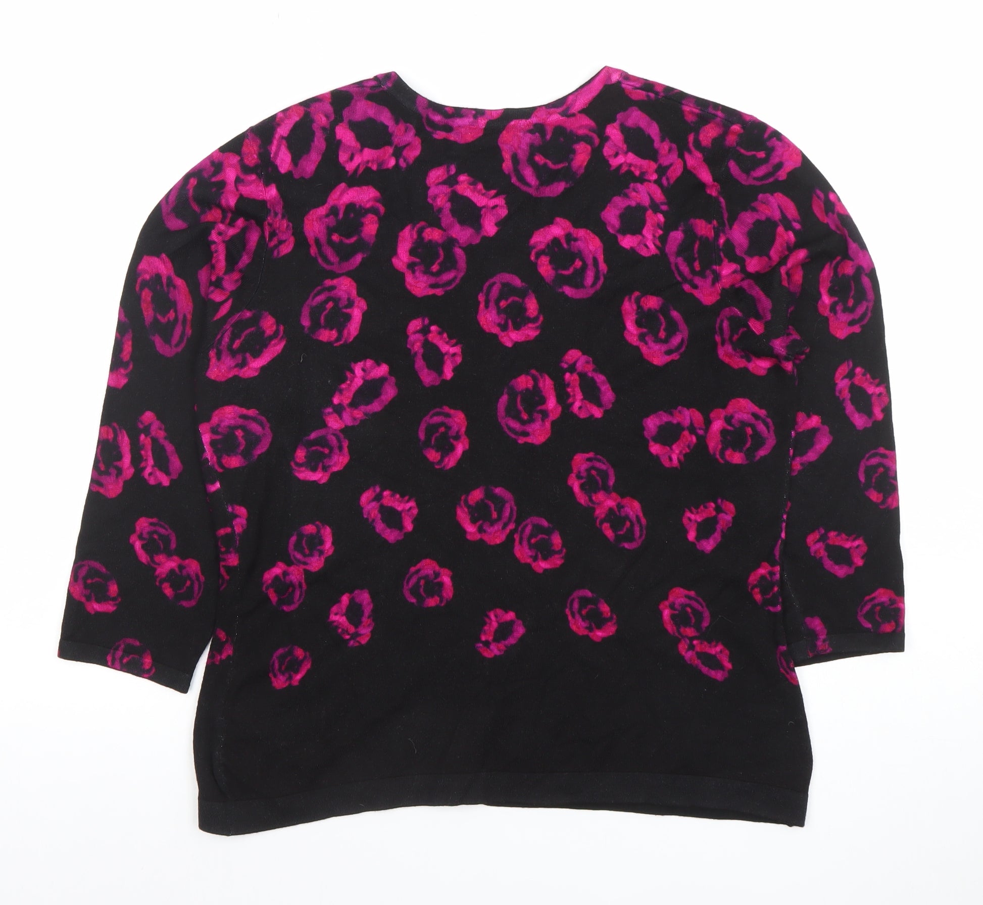 This lovely Precis Petite women’s cardigan in black and pink offers a stylish floral design perfect for brightening any outfit. Crafted from a soft and comfortable blend of viscose, nylon, and elastane, this cardigan has a stretchy, lightweight feel ideal for layering across seasons. The pretty floral pattern features bold pink accents against a black knit base, adding a feminine and contemporary touch. Designed with a round neckline and practical button-down front, it brings both versatility and a polished finish that’s easy to dress up or down. The 3/4 length sleeves give a flattering silhouette, making it suitable for transitional weather or wearing under jackets. The regular fit ensures easy wear and comfort, suited perfectly for casual days, workwear, or relaxed outings. Precis Petite is known for offering refined styles with petite proportions, and this cardigan continues that tradition of quality and timeless design. Machine washable and easy to care for, it’s made for effortless everyday style. Pair it with tailored trousers or jeans for a casual look or dress it up with a skirt and heels for a more elegant ensemble. In excellent pre-owned condition with only very light signs of wear, this cardigan remains vibrant and maintains its shape beautifully. A chic wardrobe staple that combines comfort, quality, and style in one elegant piece—perfect for adding a pop of pattern and colour to your seasonal wardrobe. Whether heading to work, a coffee date, or an evening out, this Precis Petite floral cardigan is a versatile choice that ensures you stay effortlessly stylish and comfortable throughout the day.