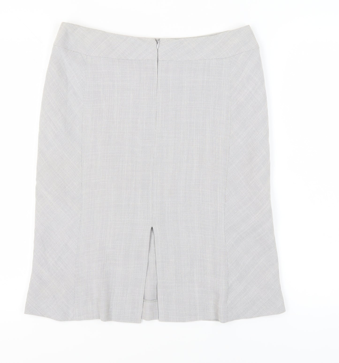 Elevate your wardrobe with this elegant Precis Petite pencil skirt, ideal for both professional and casual settings. In a versatile and sophisticated grey, this women's skirt in size 12 is designed with a flattering mid-rise and a sleek, straight silhouette. Made from a refined blend of triacetate, viscose, and polyester, the skirt offers a comfortable fit and a polished look. Features include a secure zip closure and a subtle slit at the back for ease of movement, adding a touch of finesse to its clean, uncomplicated design.Perfect for business occasions or everyday wear, this lined skirt presents a no-pattern design that makes it a quintessential piece for mix and matching with various tops. Team it up with a crisp blouse or a casual tee and make this skirt your go-to choice for an all-day smart look. While the skirt maintains a timeless aesthetic, its lined structure ensures comfort throughout the seasons, making it a valuable addition to your year-round wardrobe.Despite being in excellent condition, this previously owned piece is priced affordably, making it an accessible option for quality fashion lovers. With its moderately used status, it carries no visible damage, ensuring you a high level of satisfaction and durability. Add this Precis Petite pencil skirt to your collection today and enjoy the classic appeal it brings to your outfit.