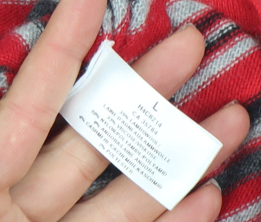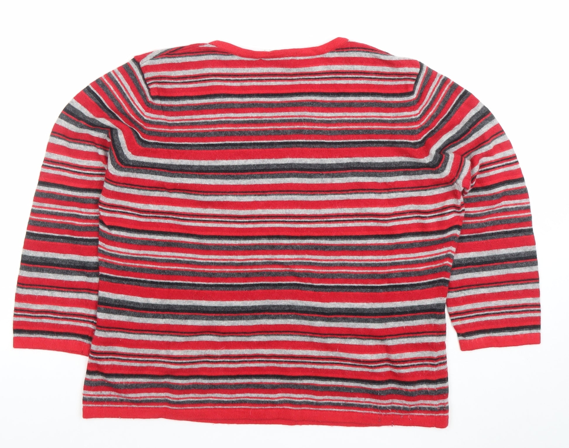 Women's Red Striped Wool Blend 3/4 Sleeve Jumper L