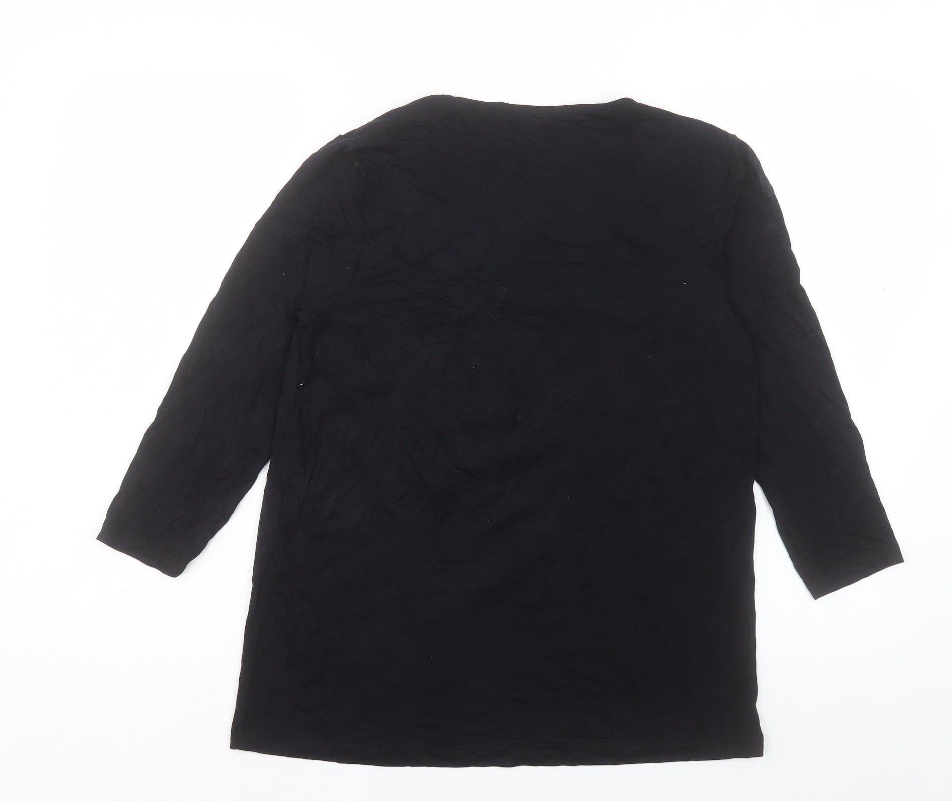 Womens Black Viscose Basic T-Shirt Size S Scoop Neck
