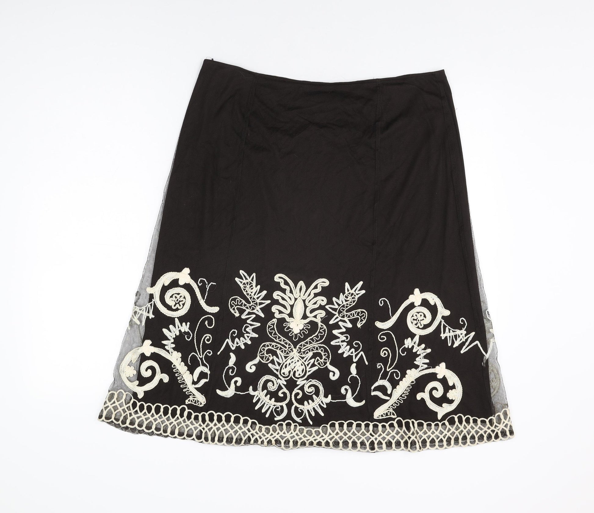 Womens Brown Floral Polyester Swing Skirt Size 16 Zip