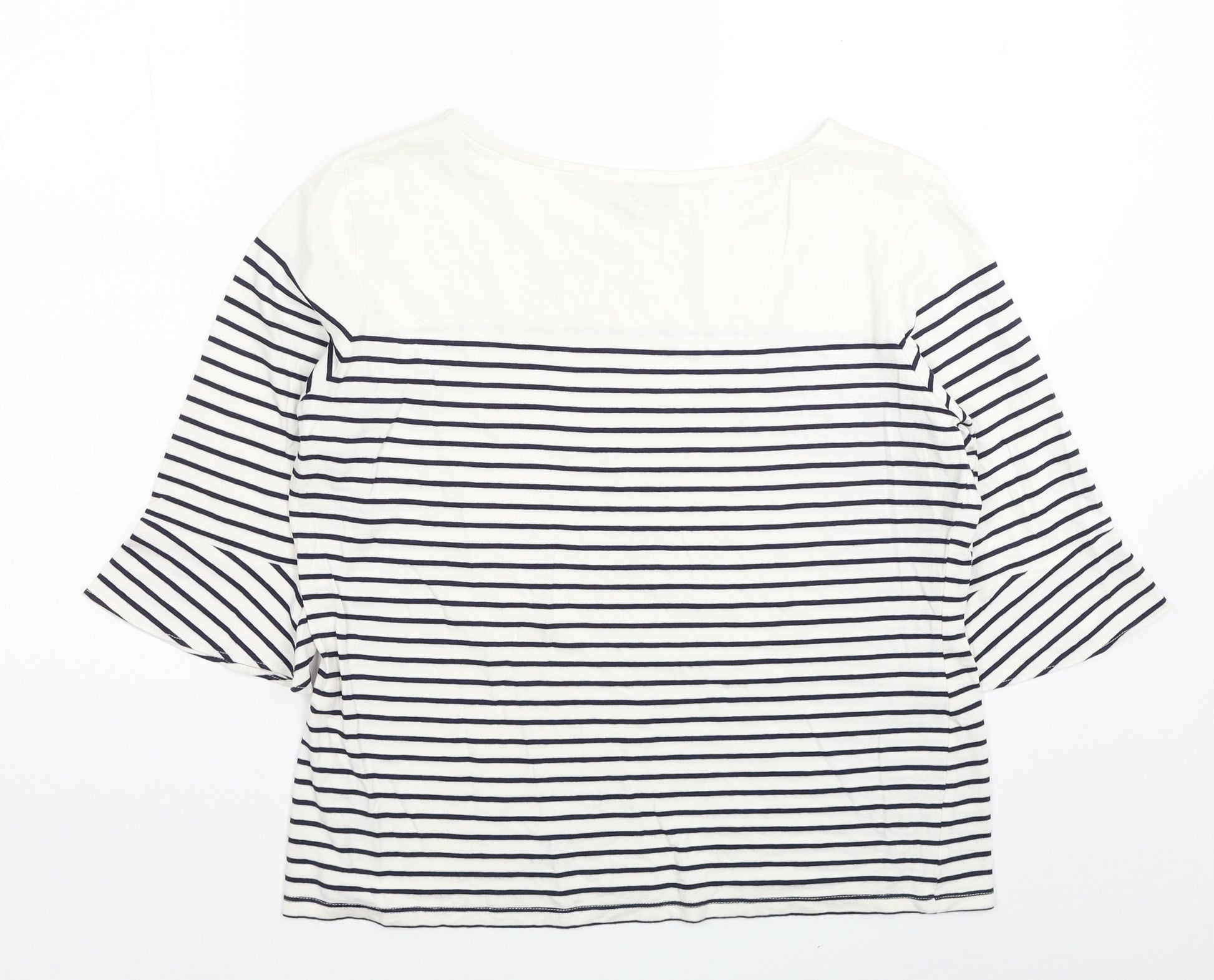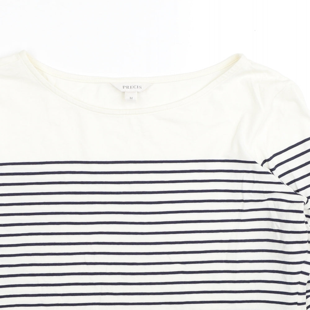 Womens White Striped Cotton Basic T-Shirt Size M Boat Neck