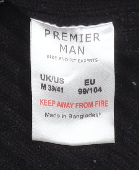 This Premier Man black ribbed knit jacket offers timeless style and reliable comfort, making it an essential layer for cooler weather. Crafted from 100% acrylic, the soft ribbed knit construction provides a cosy texture that retains warmth without being bulky. The stand-up collar and full front zip fastening give this piece a smart yet casual appeal, suitable for layering over shirts or t-shirts. Designed in a versatile mid-length cut, it flatters most body types and provides lightweight insulation ideal for autumn and winter wear. The neat ribbed cuffs and hem help to maintain shape while locking in warmth, ensuring the jacket performs well in both indoor and outdoor settings.This men’s size medium (40-inch chest) jacket represents Premier Man’s focus on fit and comfort, suited to everyday use whether for casual weekends, travel, or relaxed gatherings. The machine washable acrylic fabric is easy to care for, resisting shrinkage and maintaining appearance over repeated washes. Finished in classic black, this jacket complements almost any outfit, delivering effortless versatility.Condition is excellent, showing only minimal bobbling to the surface that does not detract from wear or appearance. A practical addition to any wardrobe, it offers reliable comfort, classic styling, and low-maintenance care — all at great value. Whether worn zipped up for warmth or open for a more relaxed look, this piece provides a clean, masculine silhouette ready for everyday style and comfort.
