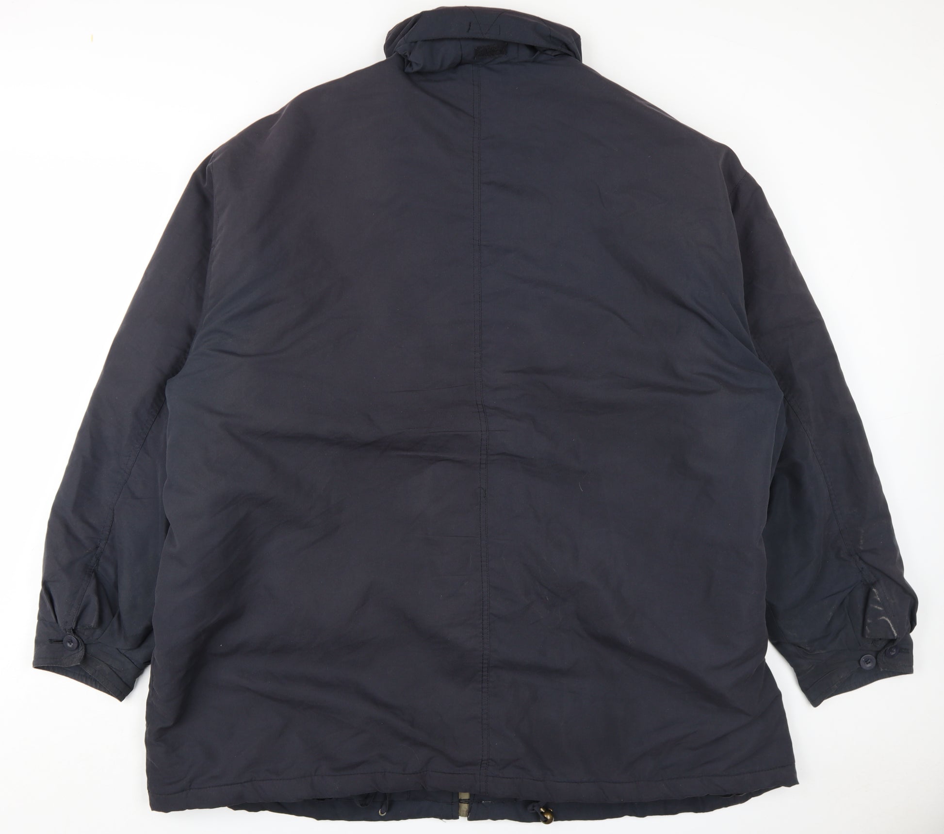 Stay warm and stylish in this Premier Man coat, perfect for autumn and winter wear. Crafted for men, this black coat is an excellent choice for casual outings. Made from 100% polyester, the outer shell provides durability and comfort, while the acrylic and polyester lining ensure added warmth. The coat features a stand-up collar for a modern look and dual closures with button and zip for convenience. It offers a relaxed fit, making it suitable for layering, and comes with handy pockets. Although it exhibits slight signs of wear, it remains in excellent condition. A versatile piece, this coat pairs effortlessly with any wardrobe, and its price ensures great value. Ideal for everyday use, you won't want to go without it this season.