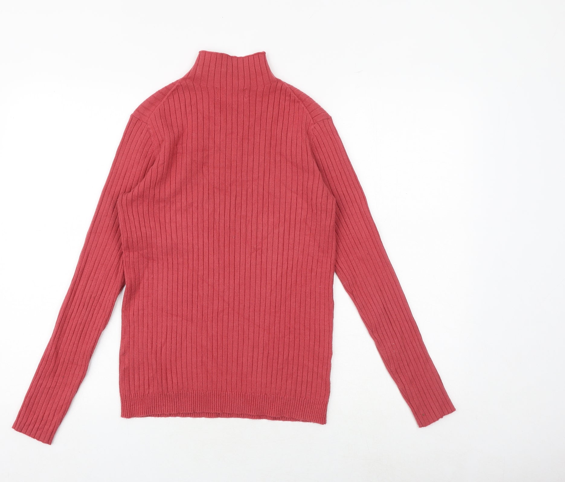 Bonmarché Women Red Mock Neck Short Sleeve Acrylic Jumper M