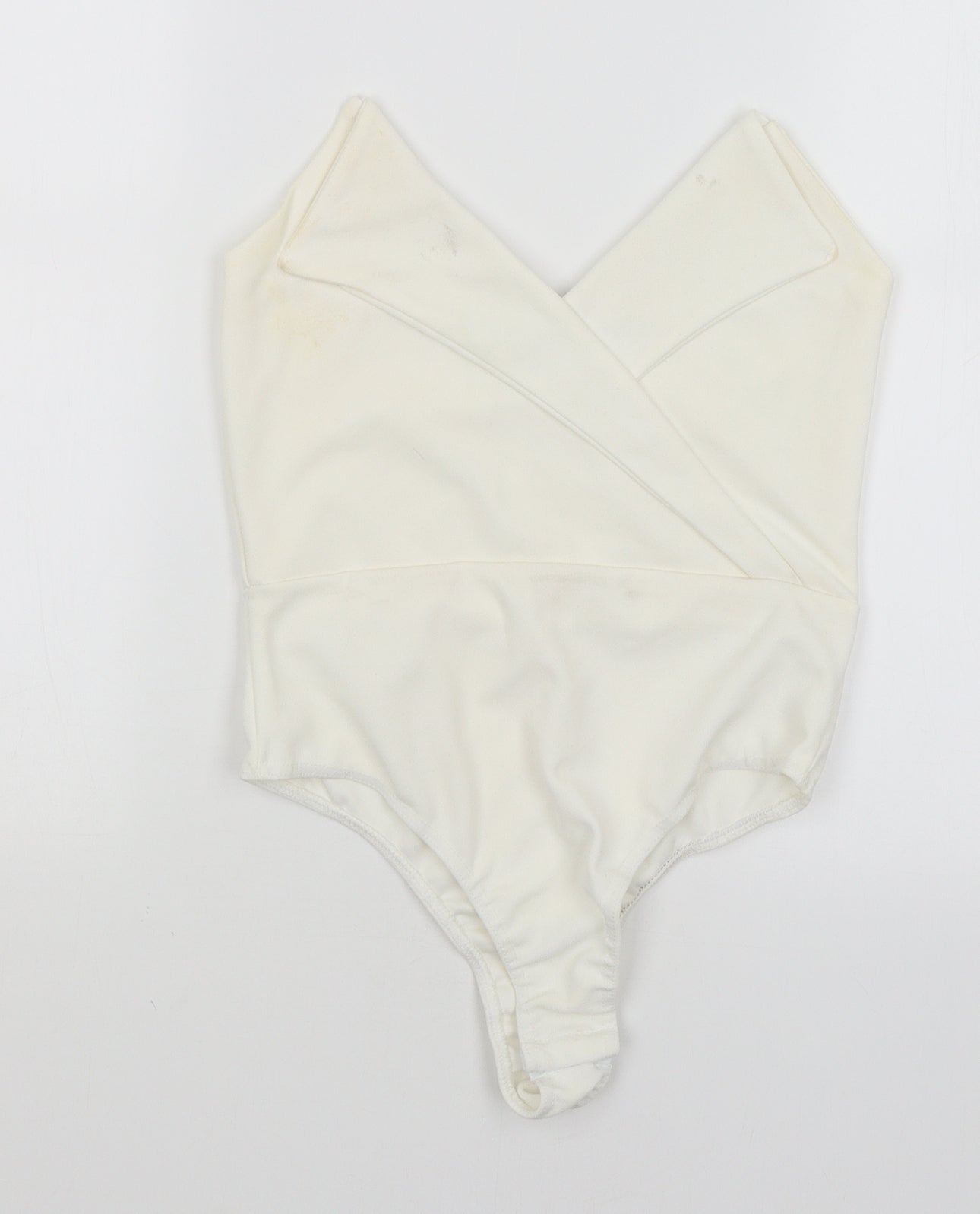 New Look Womens White Bodysuit UK 8 Jersey Scoop Neck Stretch Sleeveless