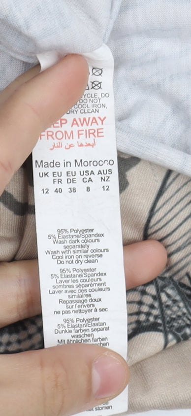PrettyLittleThing Beige Graphic Bodycon Dress Size 12
