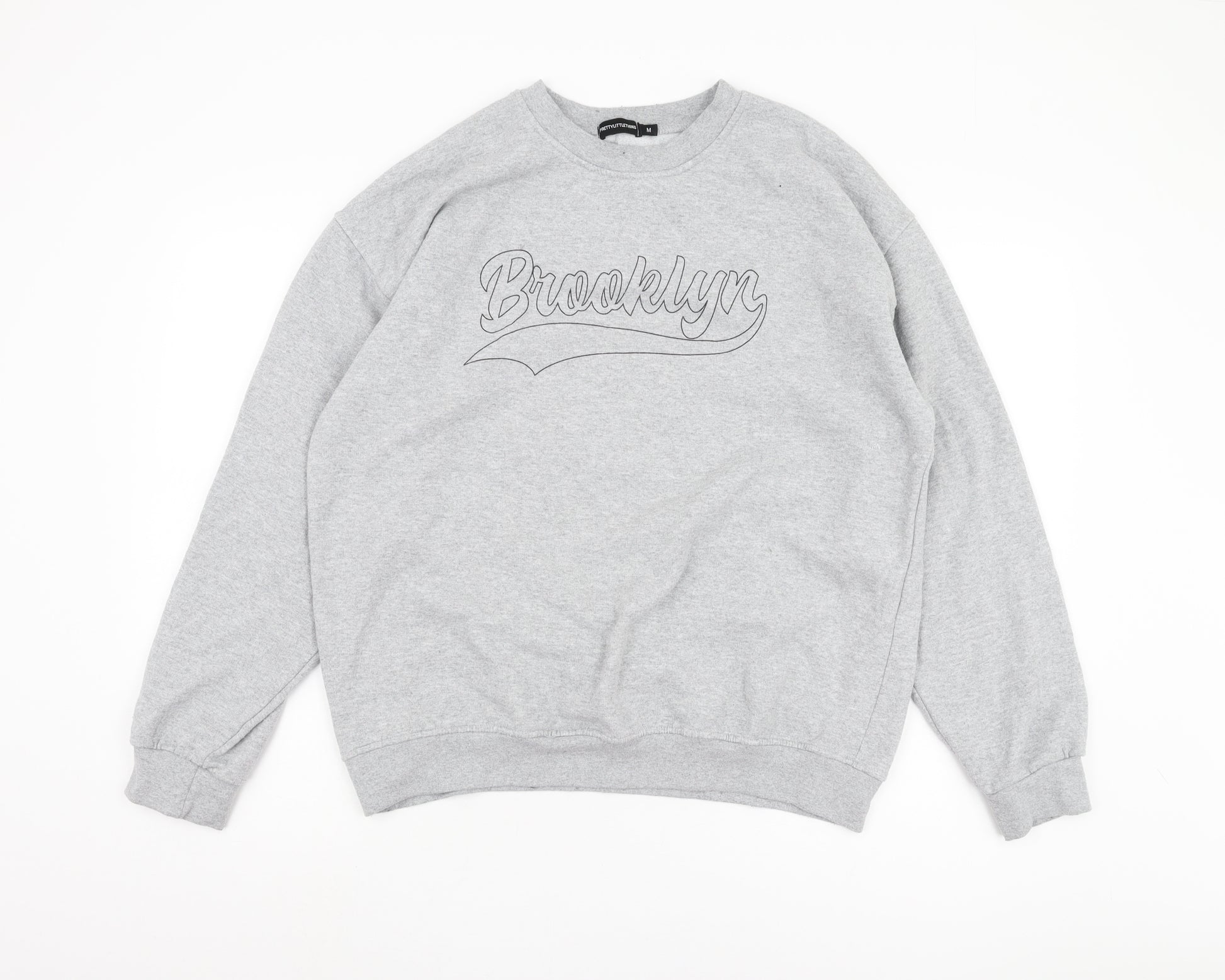 Dive into urban fashion with this PrettyLittleThing Men's Grey Sweatshirt. Designed for the modern man, this regular fit sweatshirt offers a blend of comfort and style that’s hard to resist. Made with soft fleece fabric, it promises warmth and a cosy feel against the skin, perfect for all seasons. The sweatshirt features a classic crew neck and long sleeves, ideal for day-to-day casual wear. An embroidered 'Brooklyn' across the chest adds a city-chic accent, making it not only a wardrobe staple but a statement piece too. Whether you're out for a casual walk or dashing through your daily errands, this lightweight pullover ensures you look effortlessly cool. It's tailored to offer a relaxed fit, accommodating layers underneath if needed. Easy to pair with jeans or casual trousers, this piece is versatile enough to dress up or down. Despite being pre-loved, it remains in excellent condition with minimal signs of wear. Add this essential to your wardrobe and give your off-duty look a touch of urban flair.