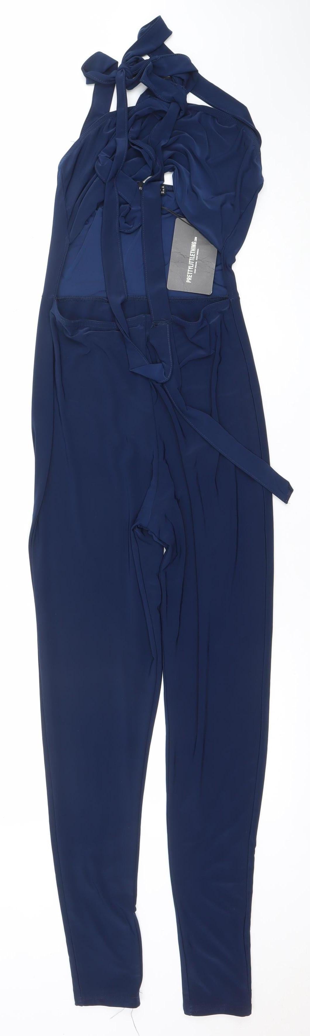 PrettyLittleThing Women Navy Blue Size 10 Strappy Jumpsuit Polyester Blend