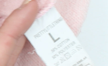 PrettyLittleThing Women Pink Logo Cropped Pullover Sweatshirt Size L