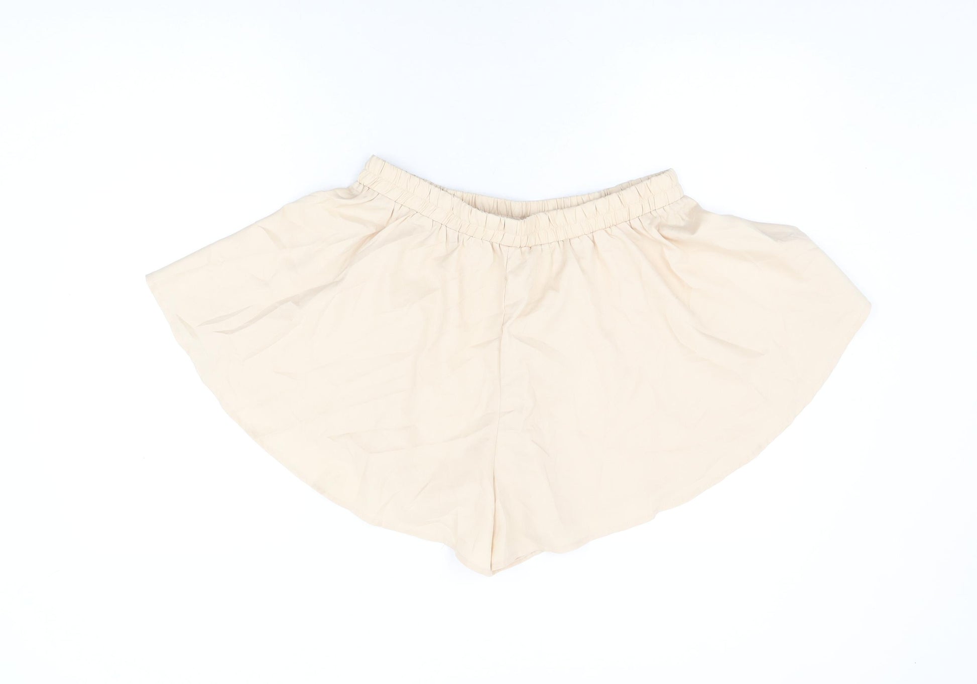 Womens Beige Polyester Basic Shorts Size 14 L3 in Regular Pull On - Floaty Shorts