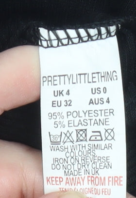 Step up your wardrobe basics with this chic PrettyLittleThing womens black bodysuit in size UK 4. Designed to provide both comfort and style, this figure-hugging bodysuit is crafted from a soft stretch knit blend of polyester and elastane, ensuring a flattering fit that moves with your body. The 3/4 puff sleeves add a feminine touch, while the ruched front detail enhances shaping and adds a subtle touch of sophistication. Featuring a scoop neckline and snap fastening for convenience, this sleek one-piece is perfect for layering under jeans, skirts or tailored trousers for a clean, polished look. The smooth ribbed knit texture keeps the silhouette streamlined, while the minimalist black tone ensures versatility across seasons. Ideal for casual days, cocktail evenings, or nights out, this bodysuit effortlessly combines comfort with elegance. Machine washable for easy care and made in the UK, this piece embodies everyday wearability and confidence. Styled simply with gold jewellery and heels for an elevated evening vibe or with denim for timeless casual chic, this PrettyLittleThing bodysuit will quickly become a staple in your collection. Conditioned in excellent preloved order with no visible faults or damage, this piece has been carefully inspected to ensure high quality and wearability. Ideal for those who love effortless black essentials that flatter the figure and work across multiple looks, it’s both versatile and trend-led, offering comfort, style, and value from one of the UK’s most popular fashion brands.