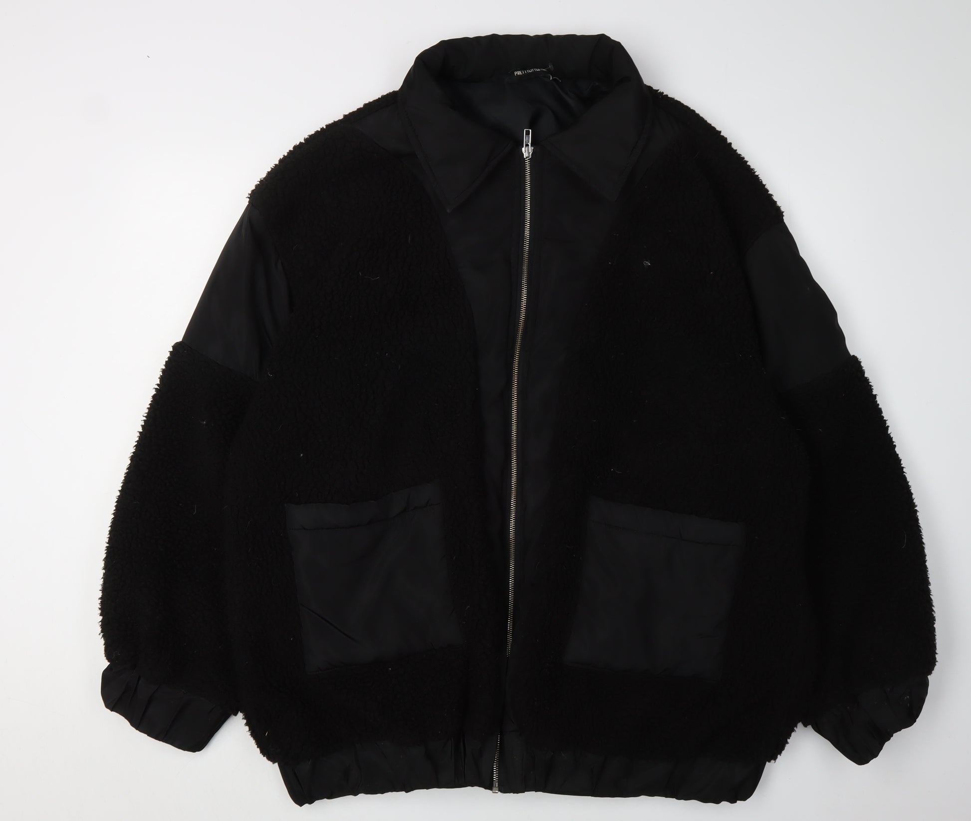 PrettyLittleThing Women's Black Fleece Jacket Size 12