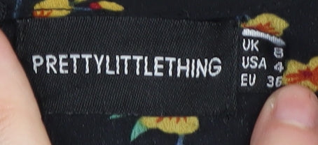 PrettyLittleThing Women's Black Floral Wrap Dress Size 8