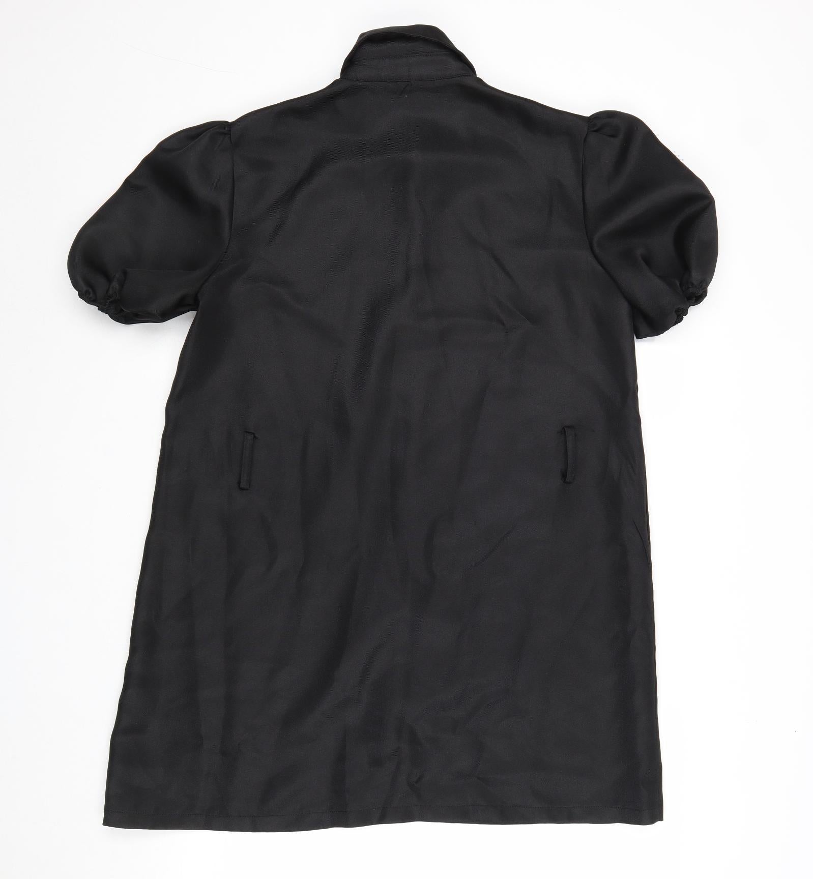 Womens Black Polyester Shirt Dress Size 8 Collared Button