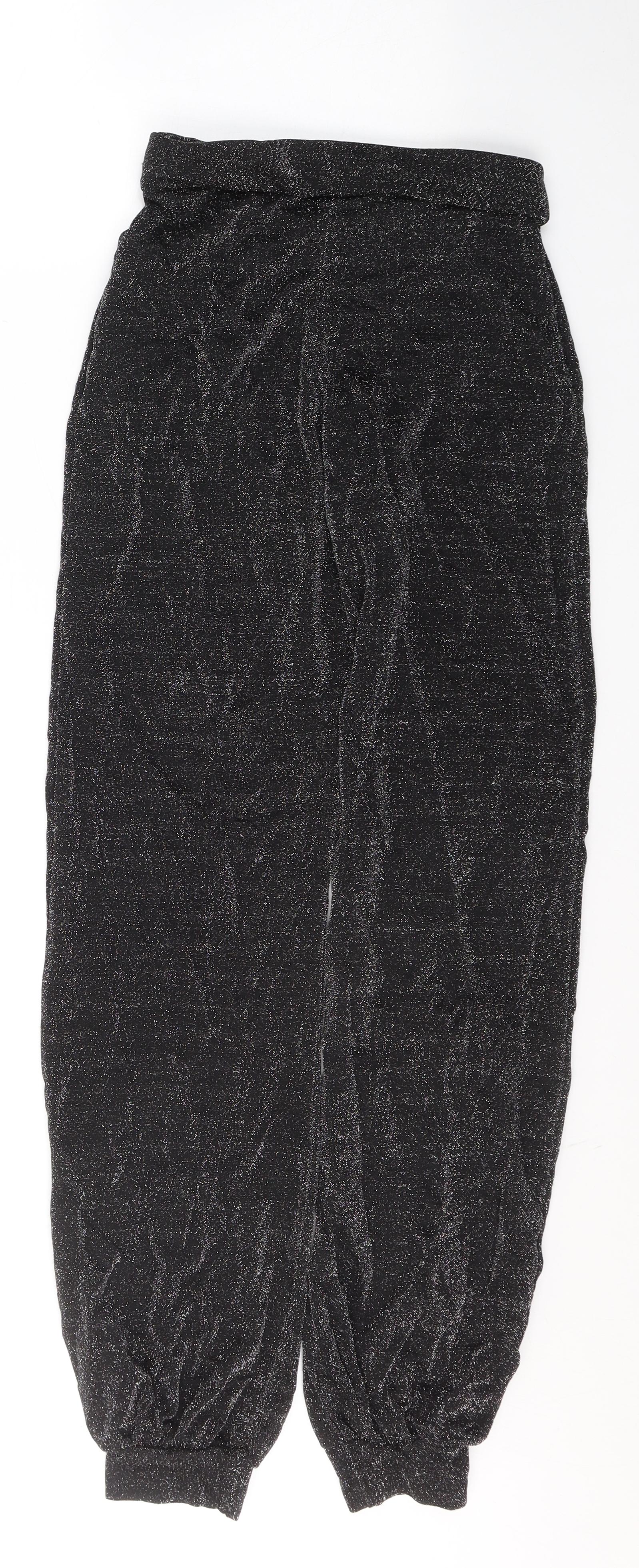 Womens Black Polyester Trousers Size 8 L30 in Regular - Glitter effect