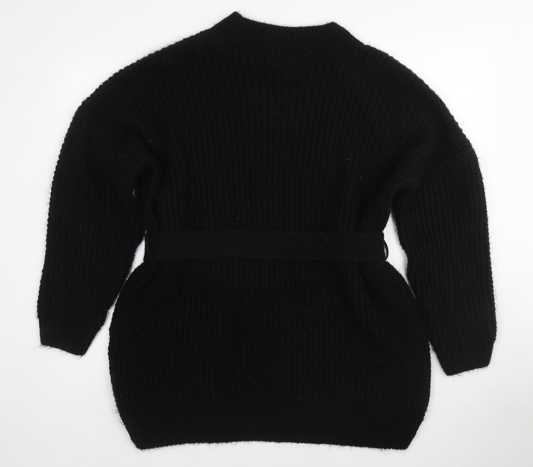 Womens Black Round Neck Acrylic Pullover Jumper Size L