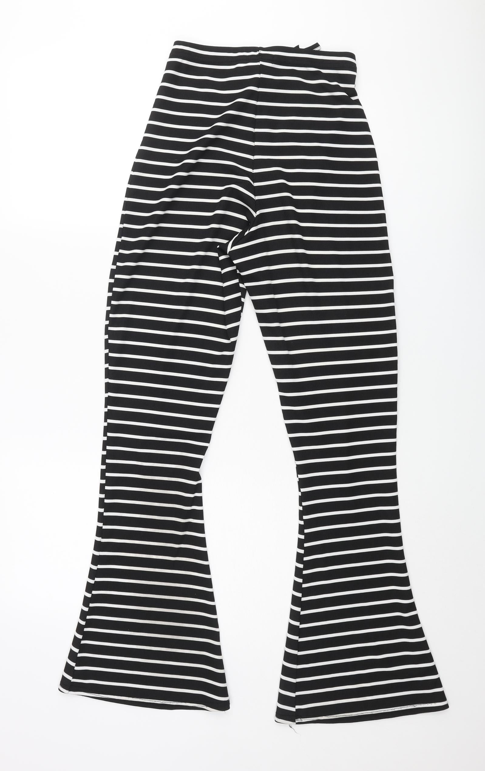 Womens Black Striped Polyester Trousers Size 8 L30 in Regular