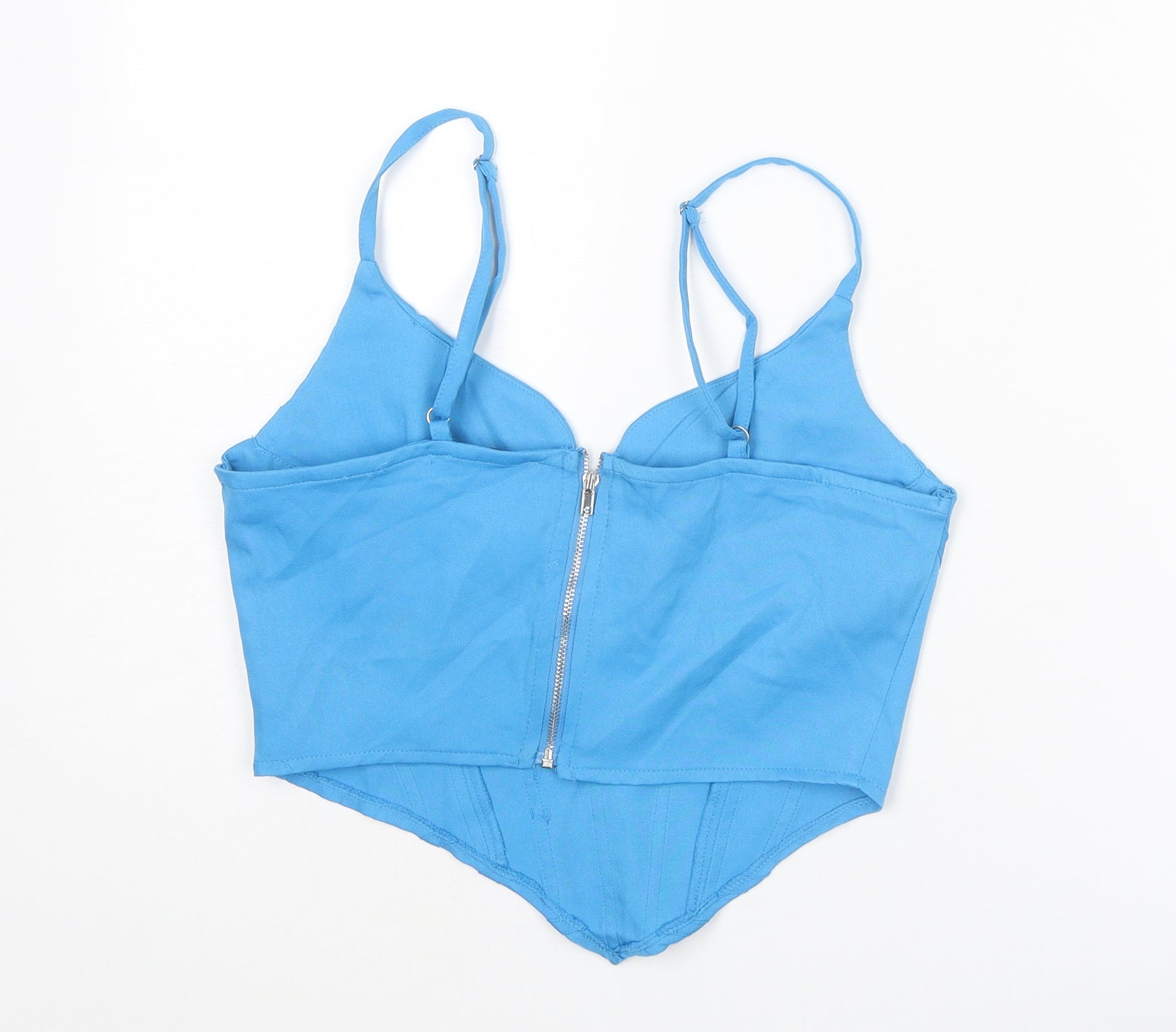 Womens Blue Polyester Cropped Tank Size 8 V-Neck