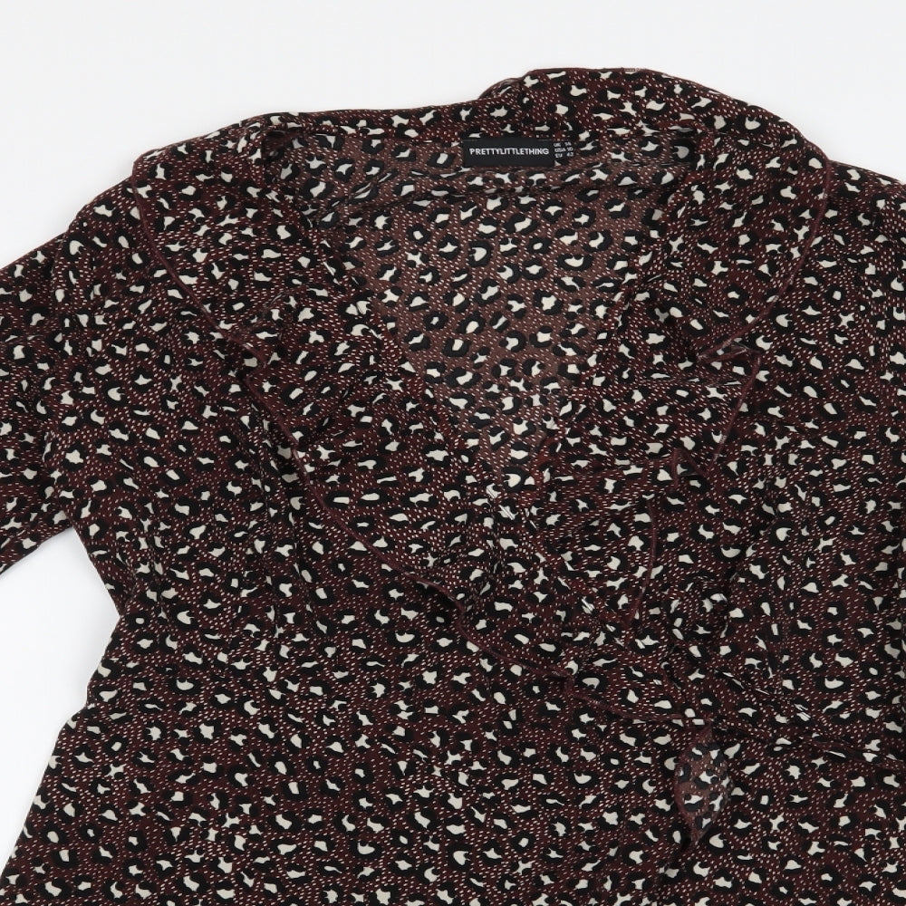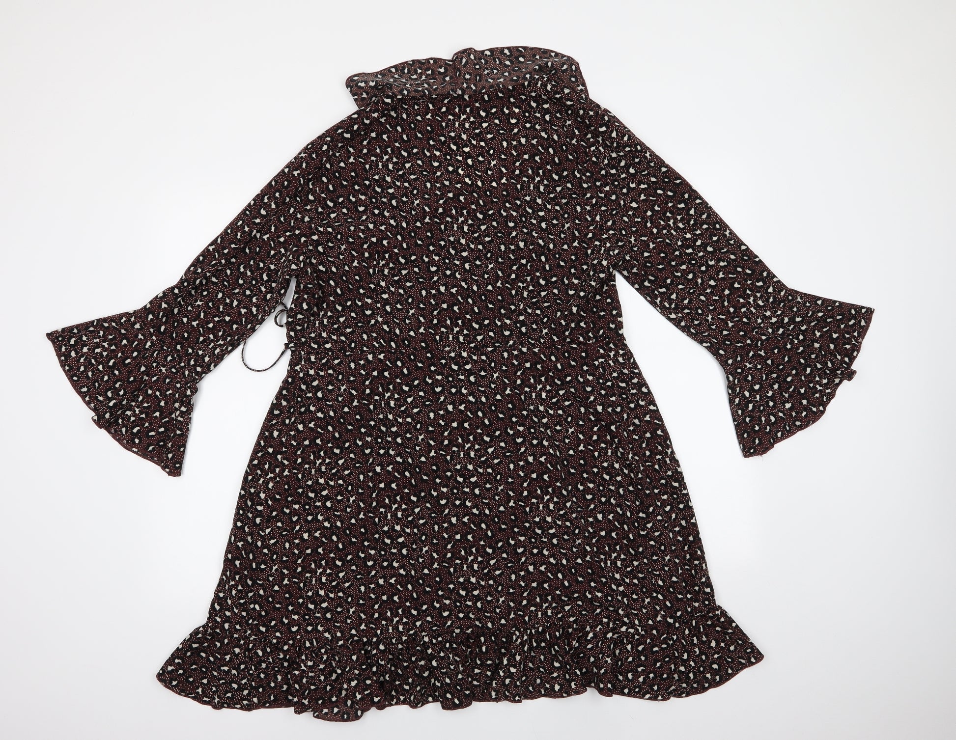 Womens Brown Geometric Polyester Wrap Dress Size 14 V-Neck