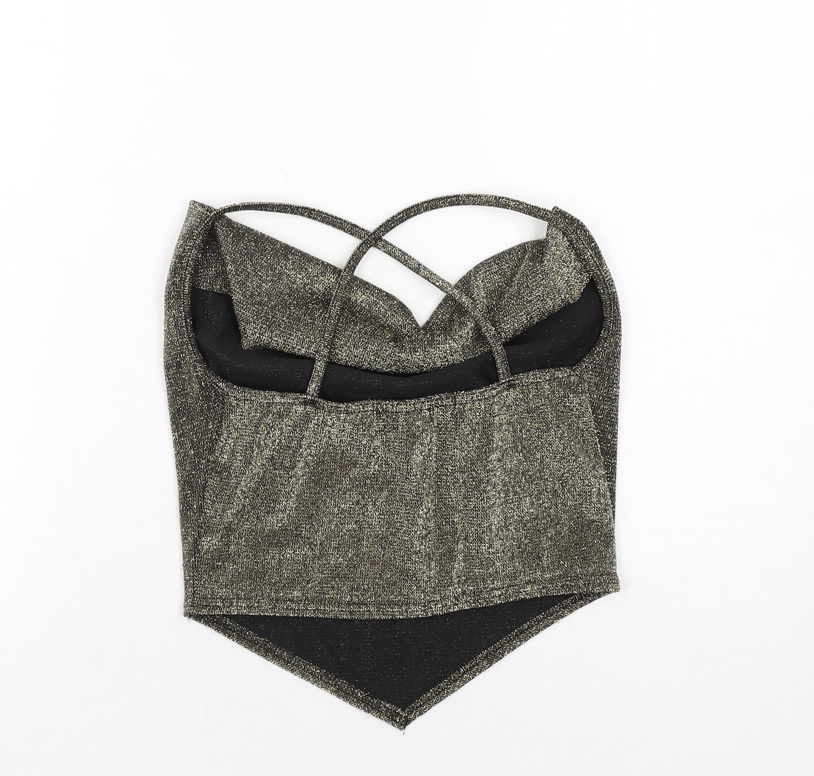 Womens Gold Polyester Cropped Tank Size 8 Cowl Neck