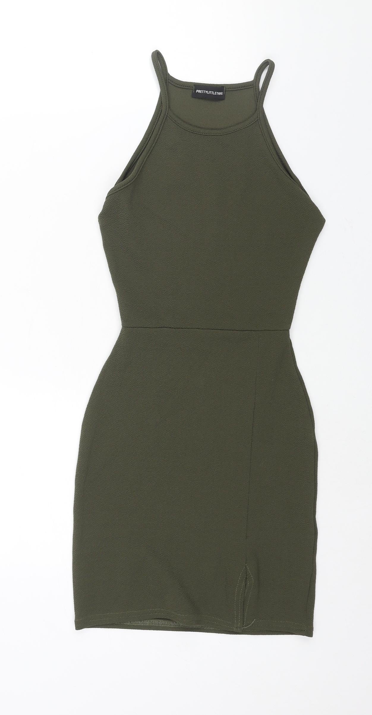 PRETTYLITTLETHING Womens Multicoloured Geometric Viscose Tank Dress Size 6 Halter Tie - Scoop Back