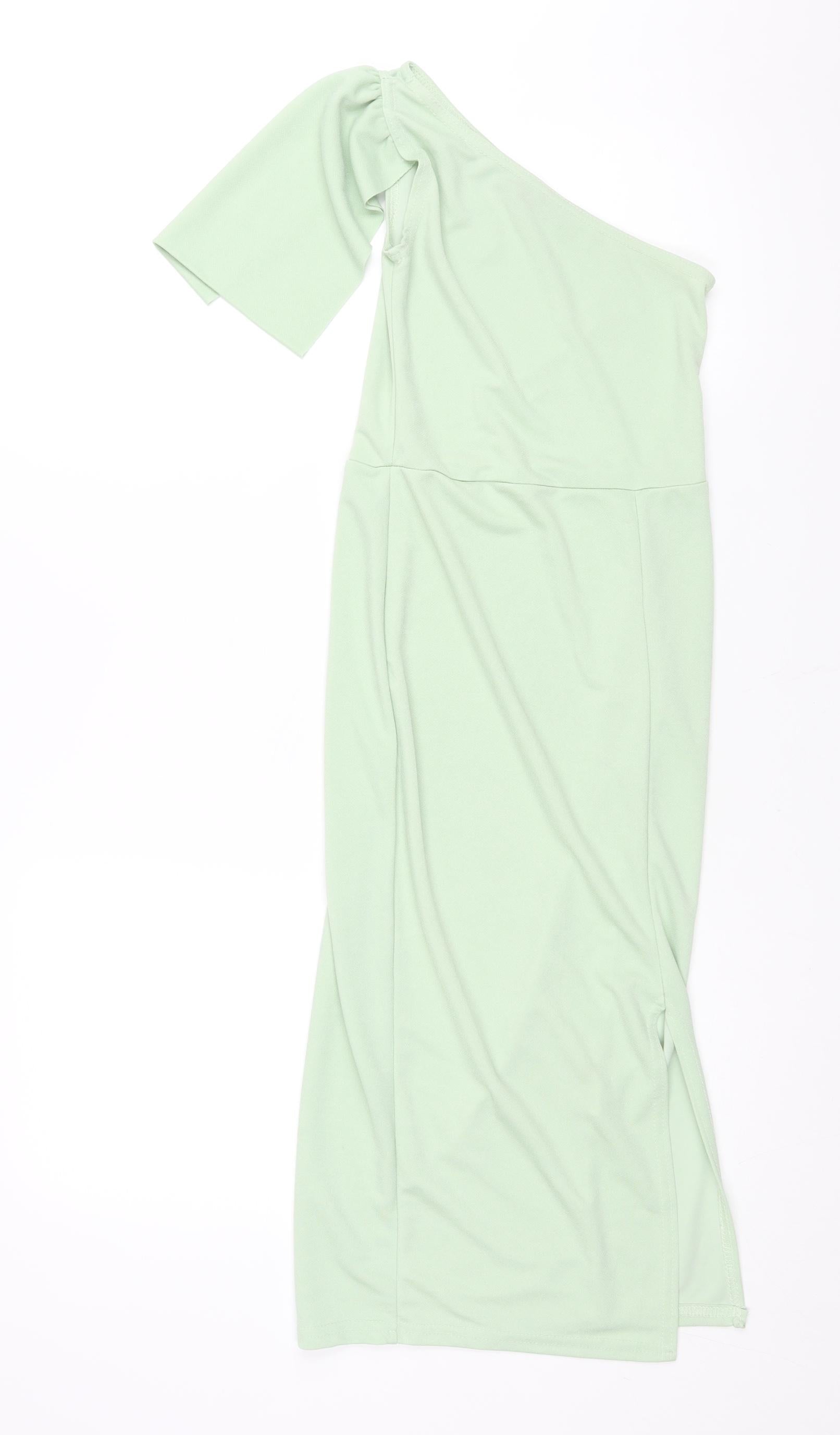 Womens Green Polyester Pencil Dress Size 4 One Shoulder Pullover - Front Slit