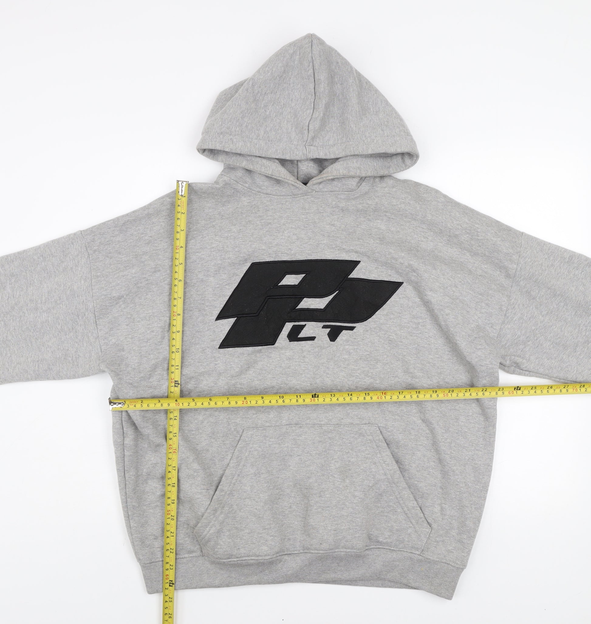Stay effortlessly stylish and comfortable with this PrettyLittleThing womens grey pullover hoodie. Designed for casual days, this medium-sized hoodie offers a relaxed fit that makes it perfect for everyday wear, lounging, or layering during cooler seasons. The soft cotton-polyester blend material provides both warmth and breathability, making it ideal for year-round comfort. A large black PLT logo accent on the front adds a trendy and instantly recognisable touch to the simple design, giving it a bold, urban edge. The hoodie features a classic pullover closure, a roomy front kangaroo pocket for convenience, long sleeves with ribbed cuffs, and a hood for extra coverage on breezy days. The medium grey colour ensures it pairs well with almost anything in your wardrobe, from joggers and jeans to leggings and casual trousers. This item shows very light signs of wear with a small mark on one sleeve but remains in excellent overall condition. Perfect for relaxed outings, shopping trips, or cosy weekends in, this PrettyLittleThing hoodie combines casual appeal with modern street style. A staple piece for any casualwear collection, this hoodie is made for comfort and trend-forward appeal. Its soft fleece interior lining offers extra cosiness, ensuring you’ll reach for it time and again. Pair it with trainers and a denim jacket for a laid-back everyday look or keep it simple and comfy for chill days at home. A great addition to the wardrobe for any woman or teen who loves easy-wear fashion with a hint of sporty edge.