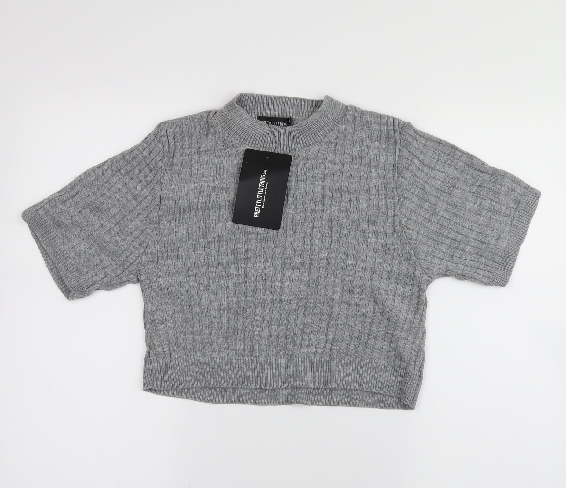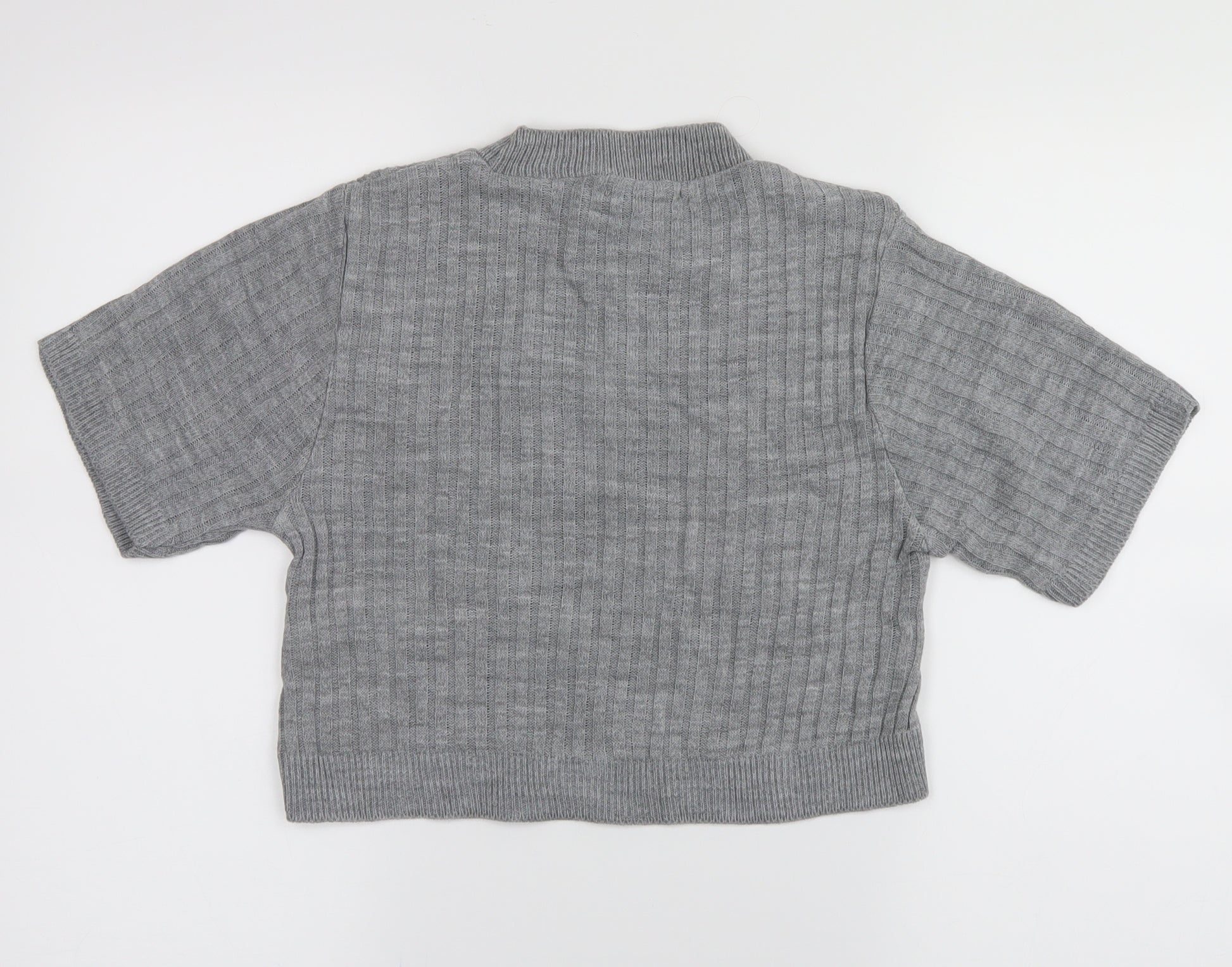 Leo & Nicole Women’s Grey Open-Knit Short Sleeve Pullover Jumper Size S