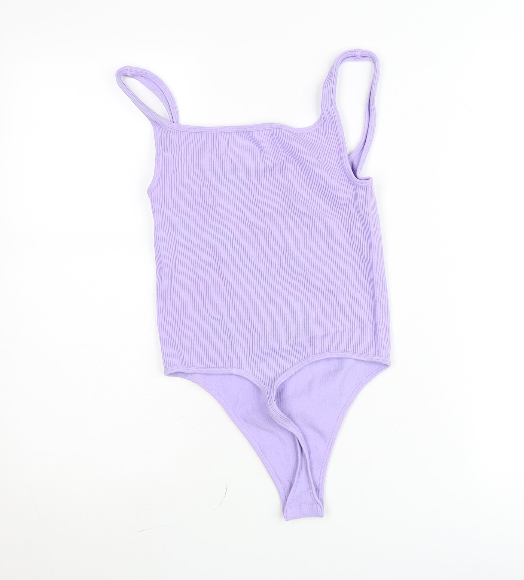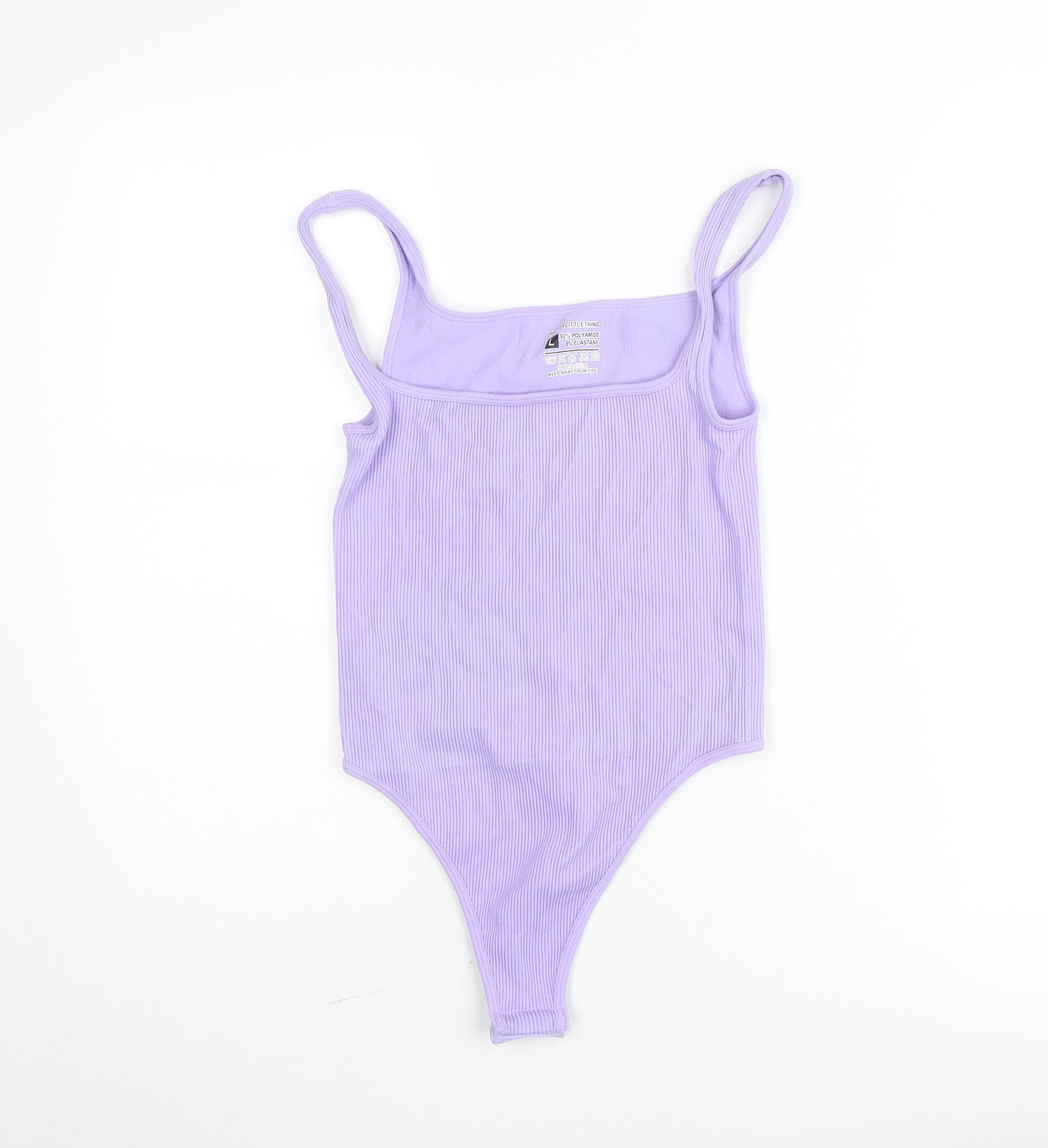 PrettyLittleThing Womens Lilac Ribbed Bodysuit Size L, Stretch Fit
