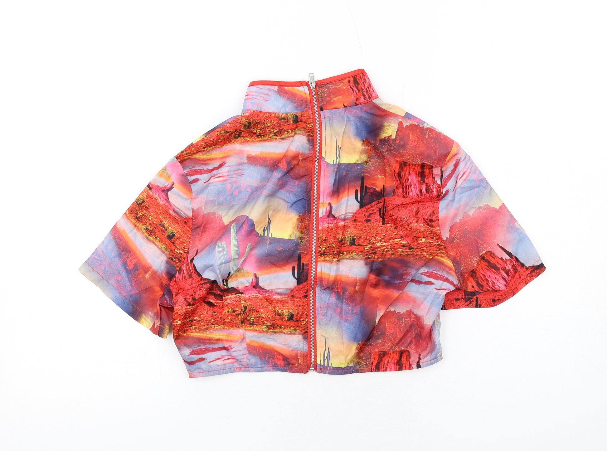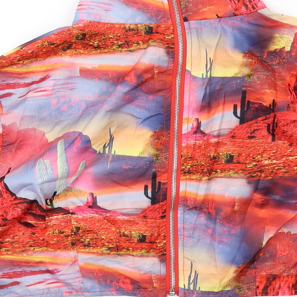 Womens Multicoloured Geometric Polyester Basic Blouse Size 10 Mock Neck