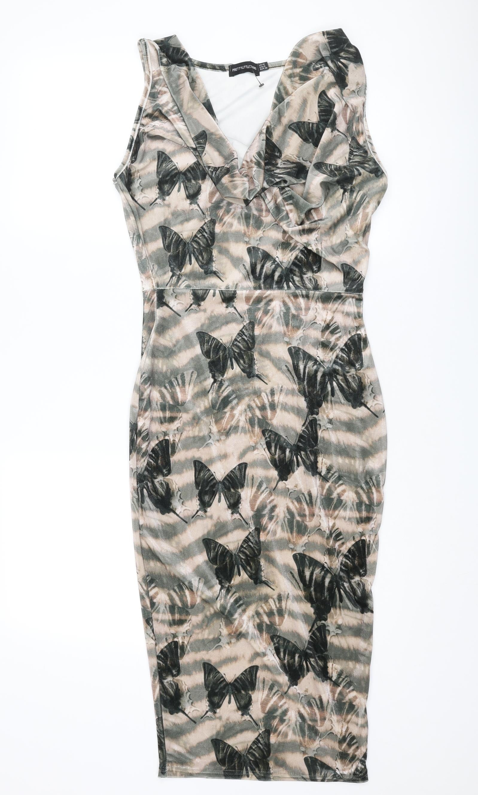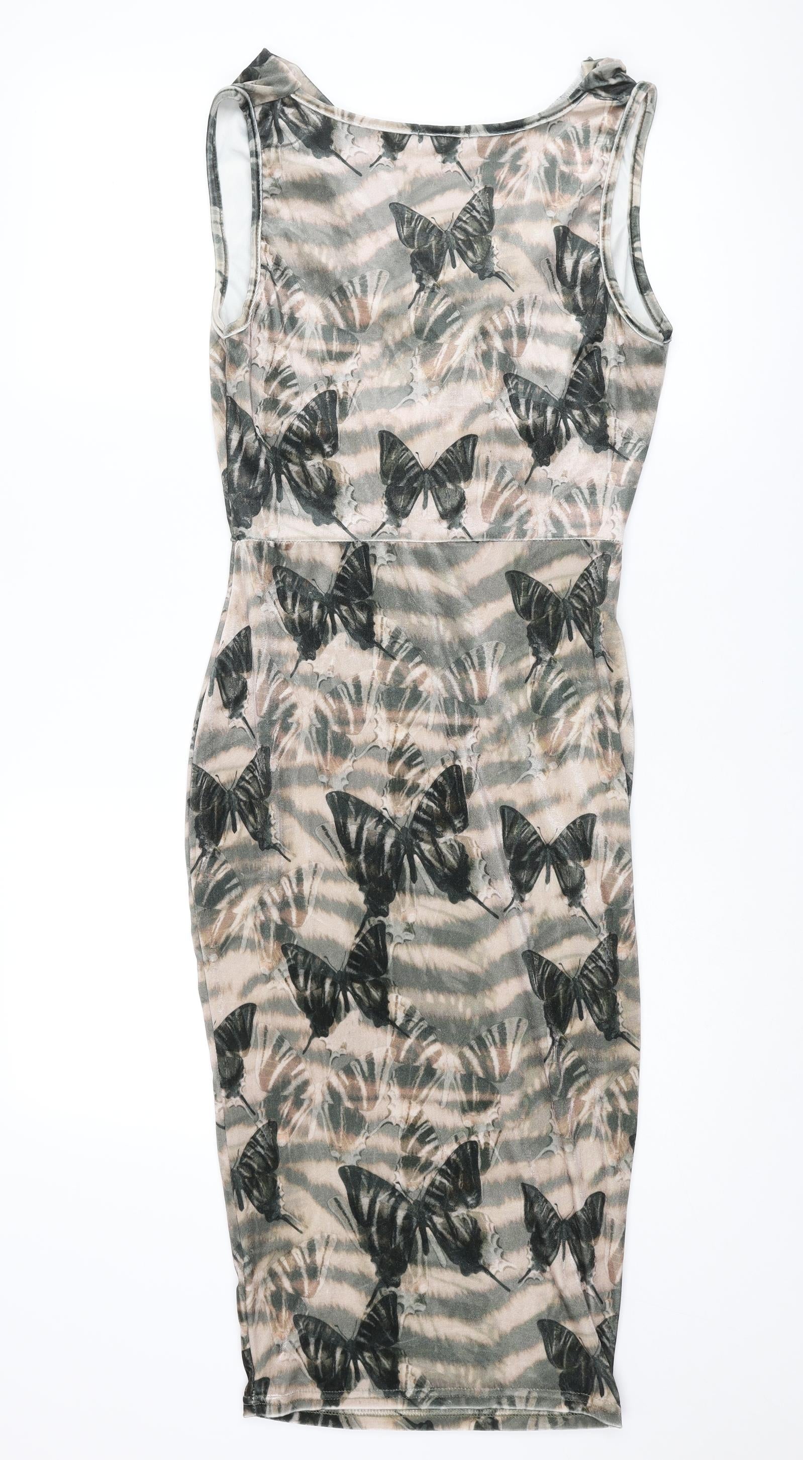 Womens Multicoloured Geometric Polyester Pencil Dress Size 10 Cowl Neck Pullover - Butterfly pattern