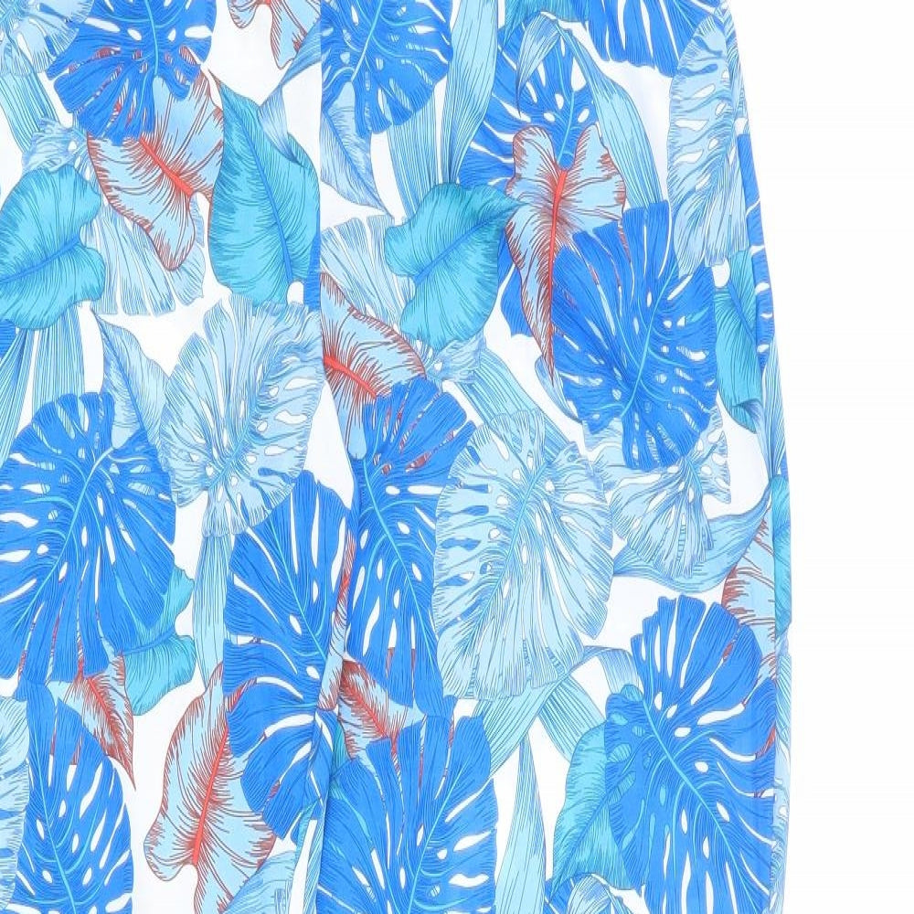 Womens Multicoloured Geometric Polyester Trousers Size 10 L34.5 in Regular Zip - Palm Print
