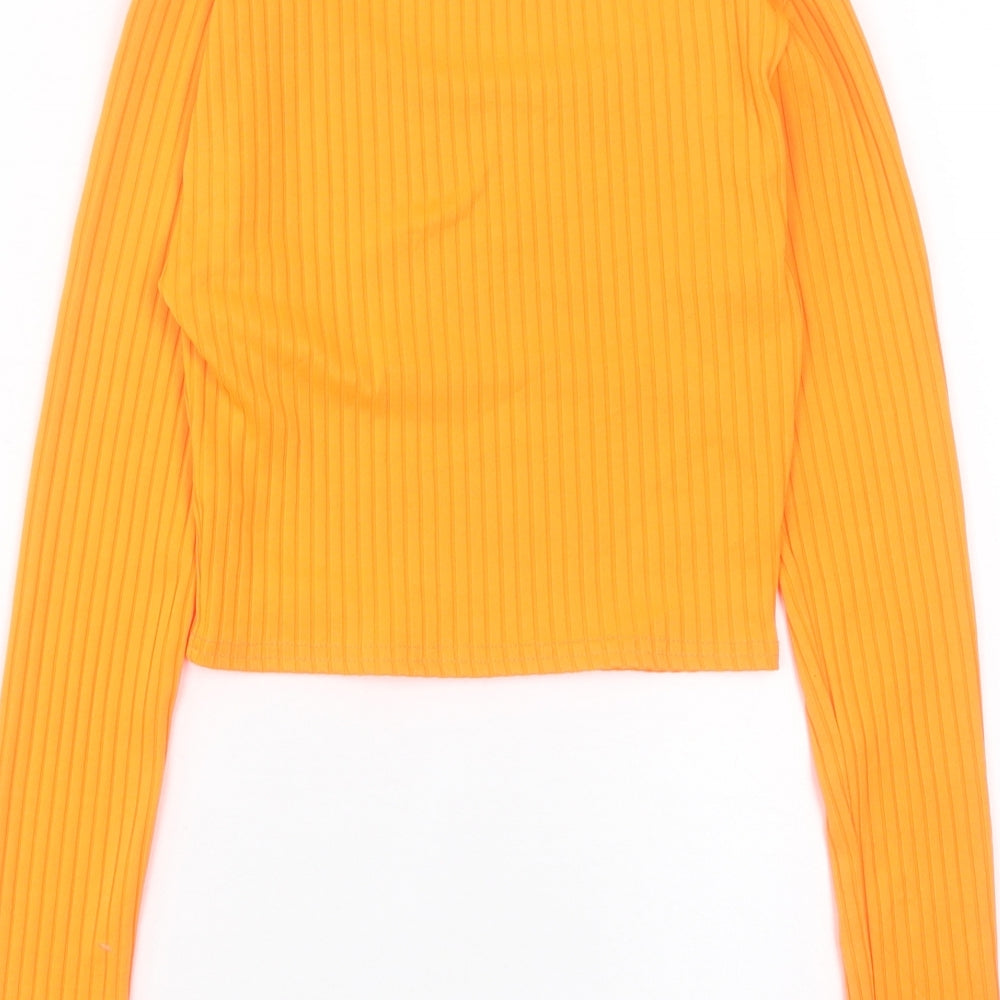 Womens Orange Polyester Cropped T-Shirt Size 8 Crew Neck