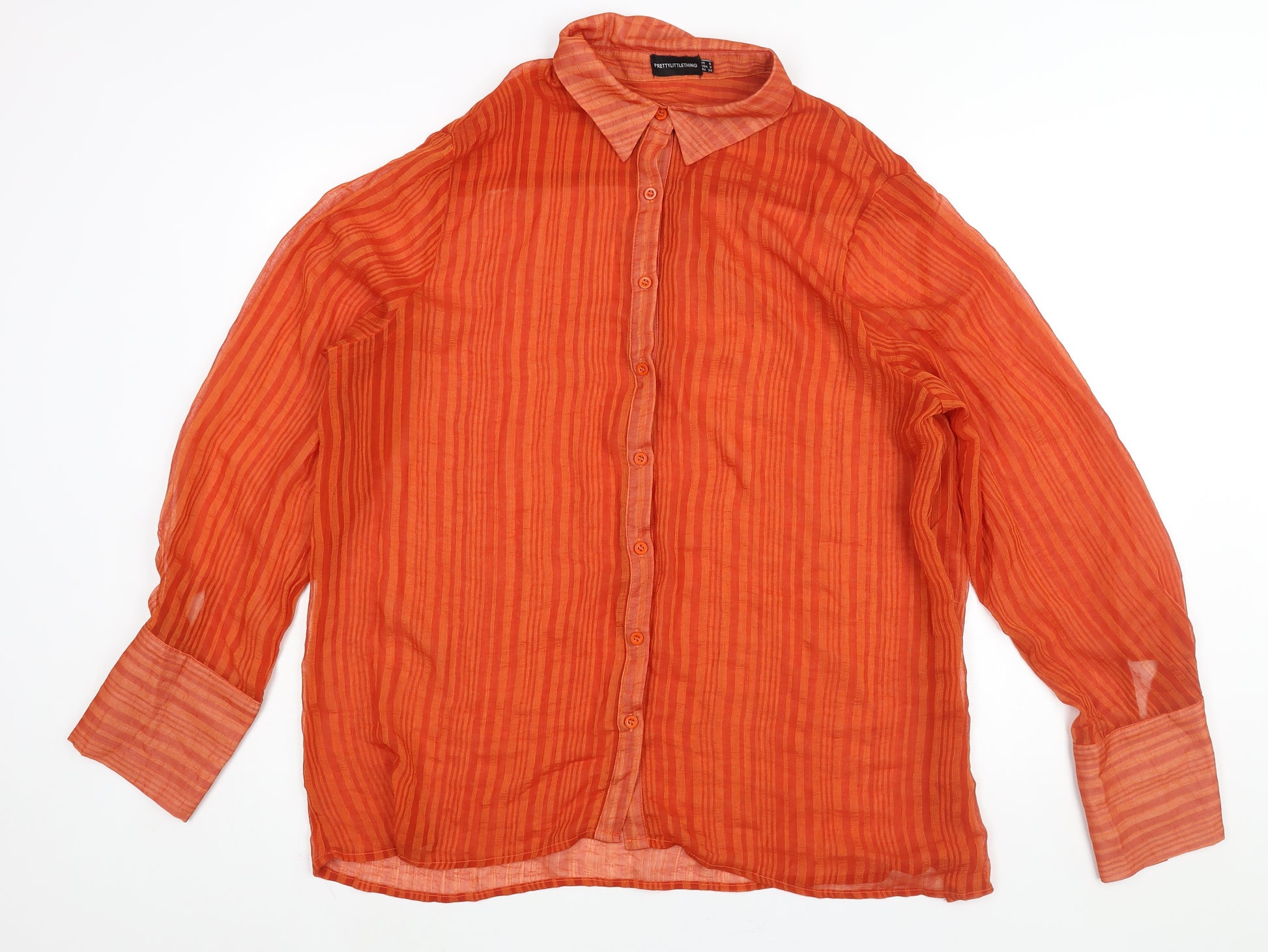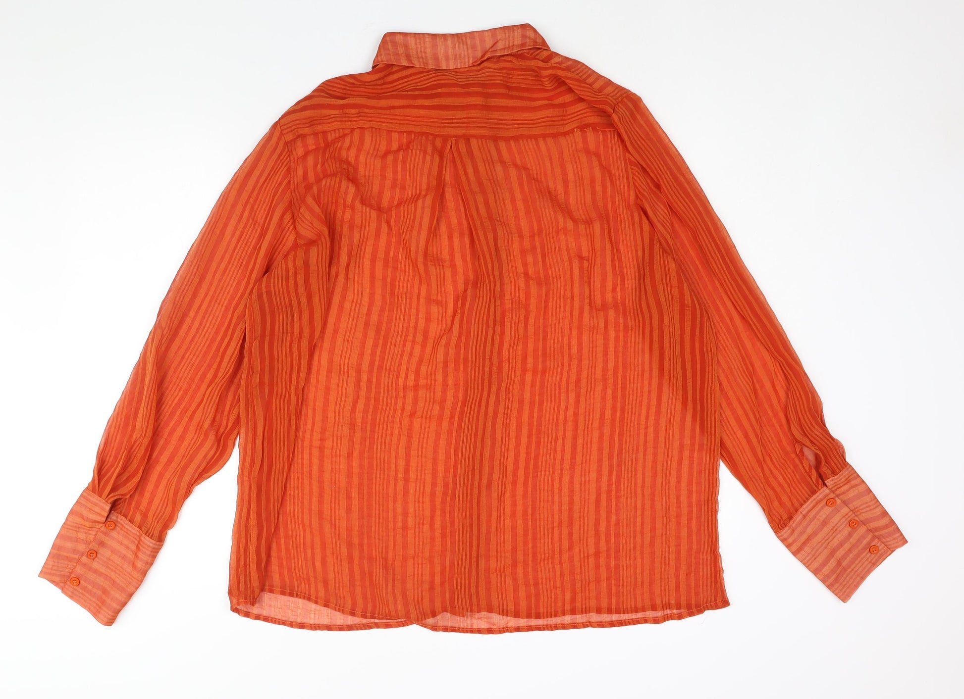 Womens Orange Striped Polyester Basic Button-Up Size 6 Collared - Semi Sheer Oversized