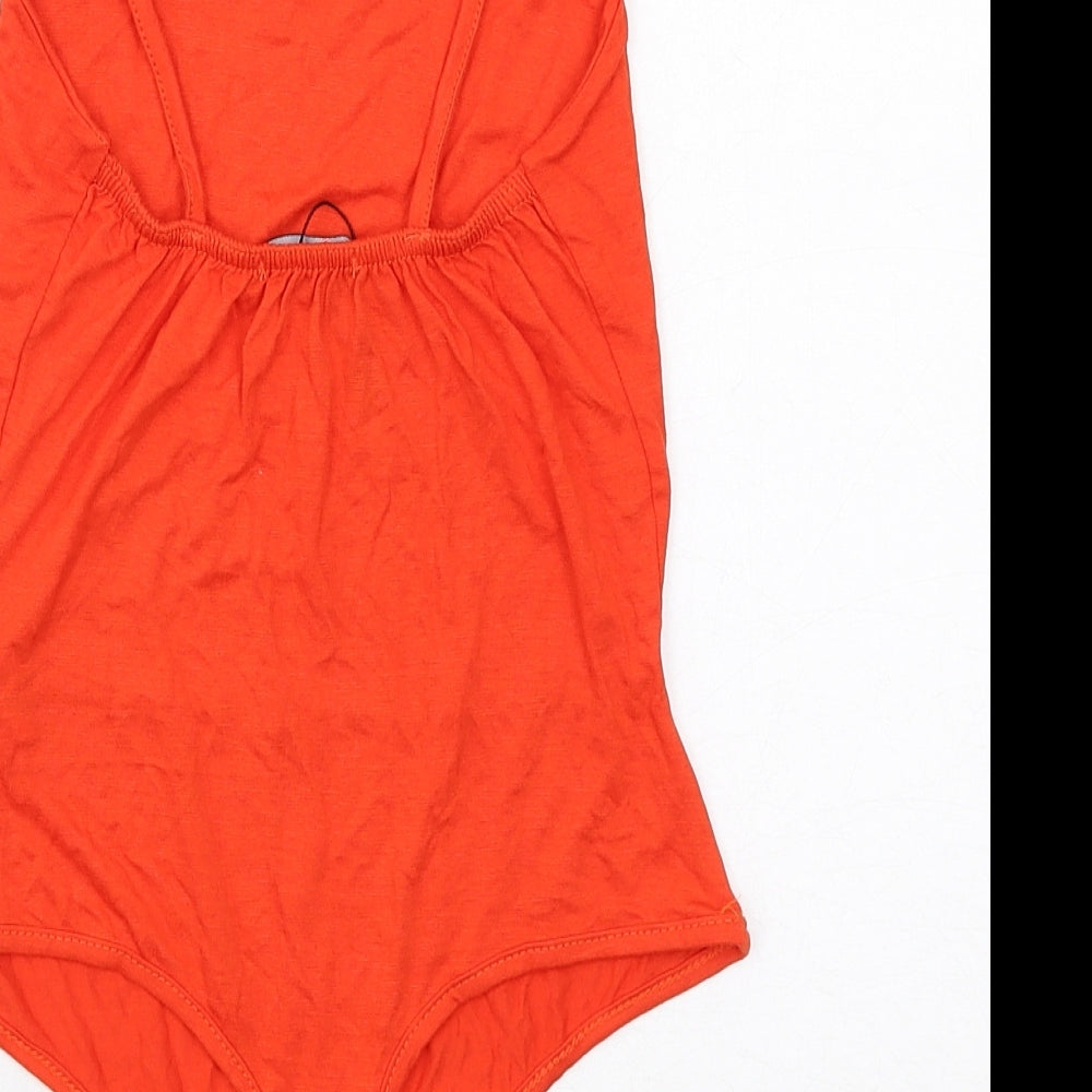 Womens Orange Viscose Bodysuit One-Piece Size 8 Snap
