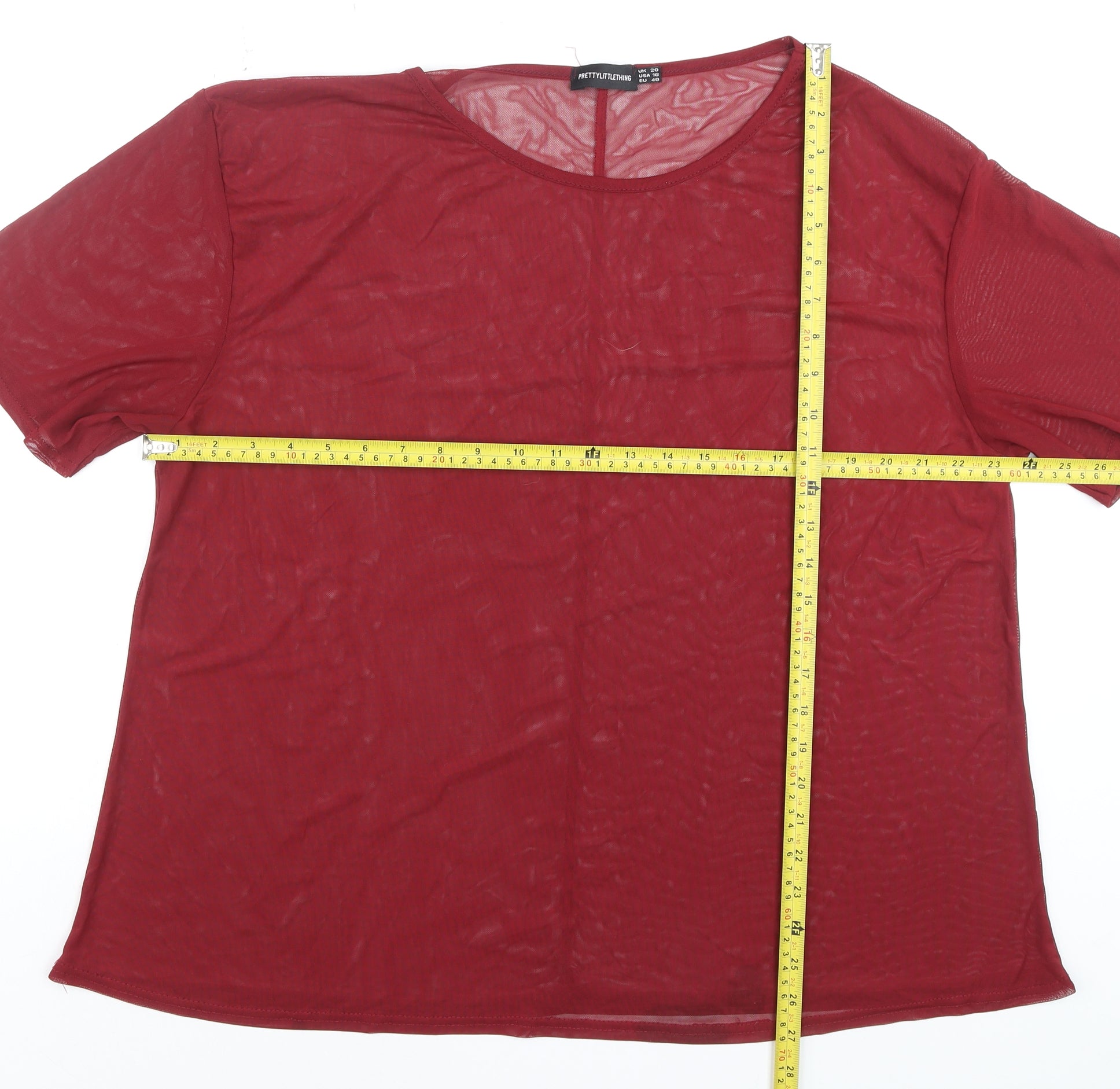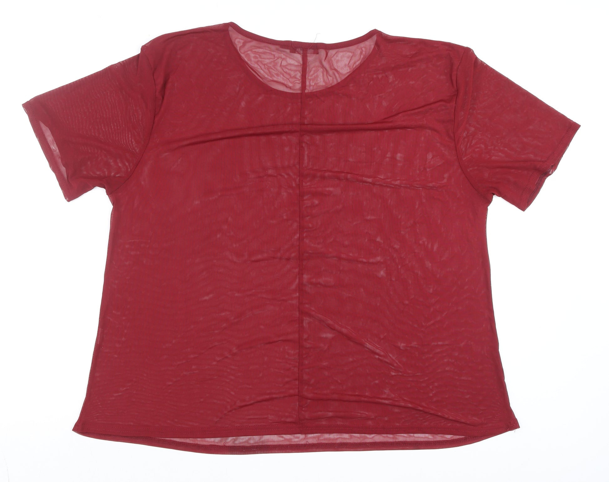 PrettyLittleThing Women's Red Sheer Mesh Short Sleeve T-Shirt Size 20