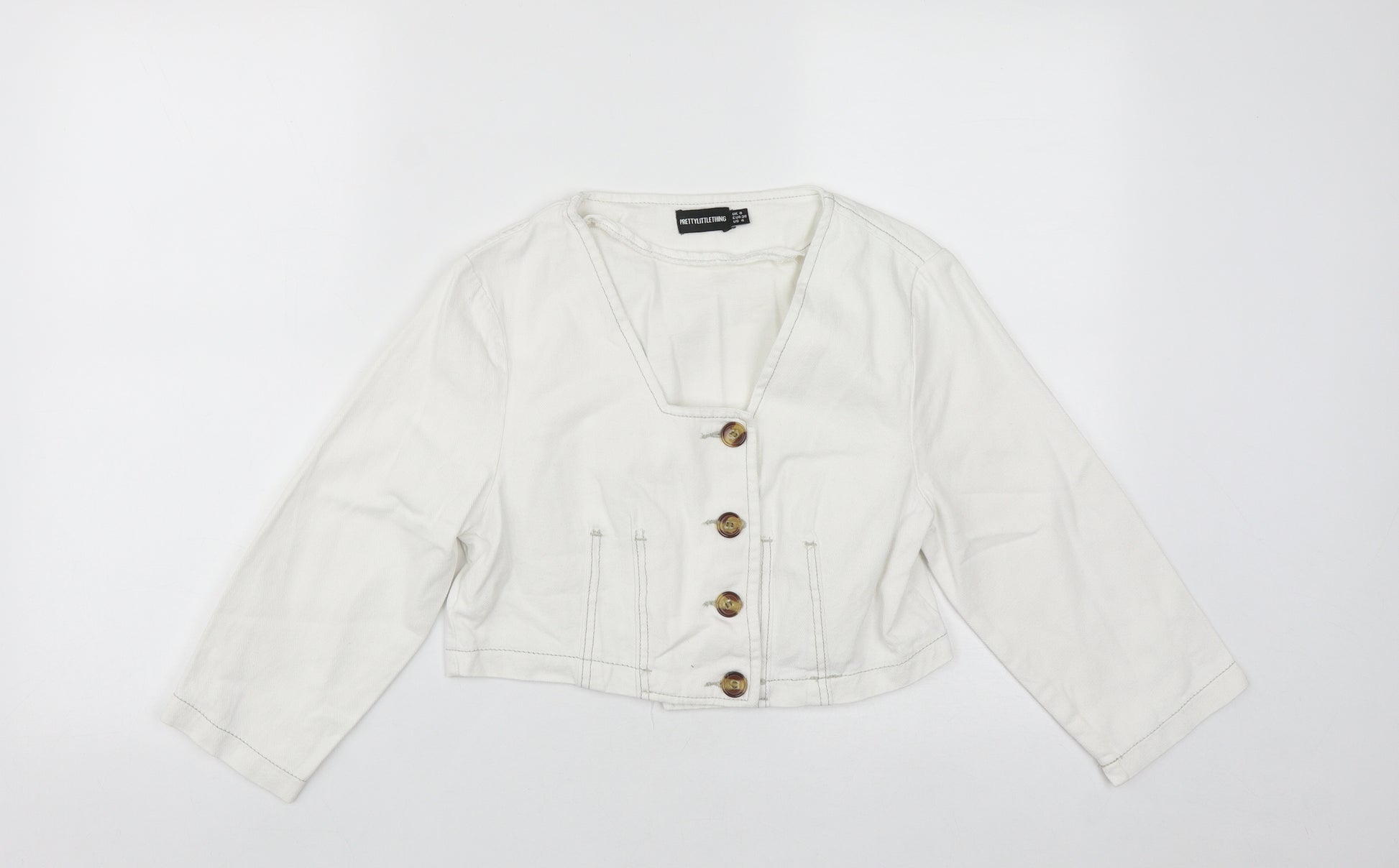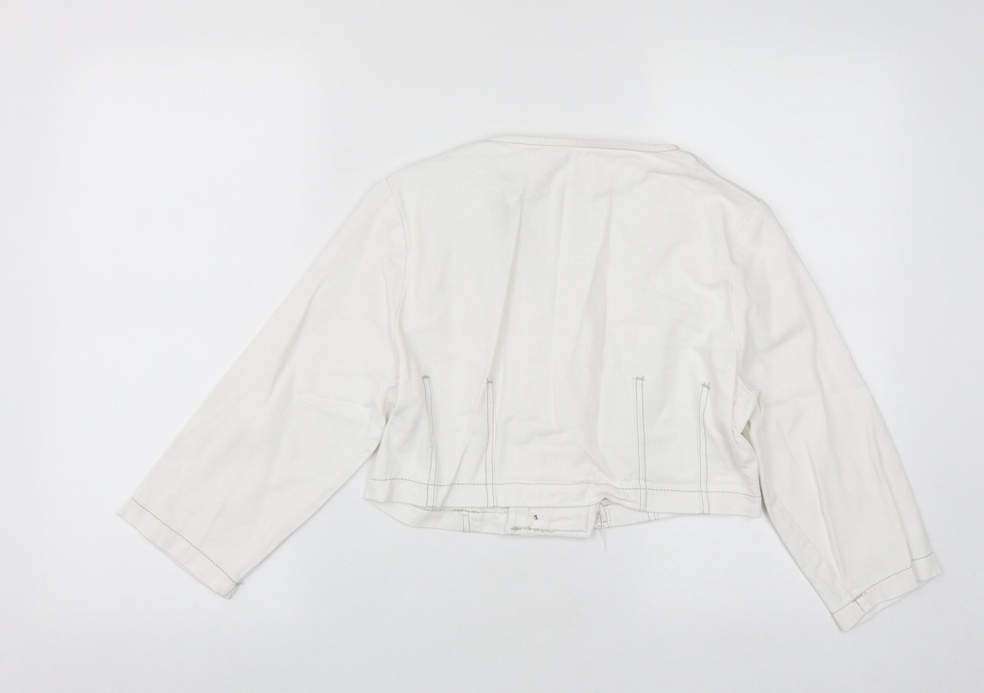 Womens White Cotton Cropped Button-Up Size 8 Square Neck