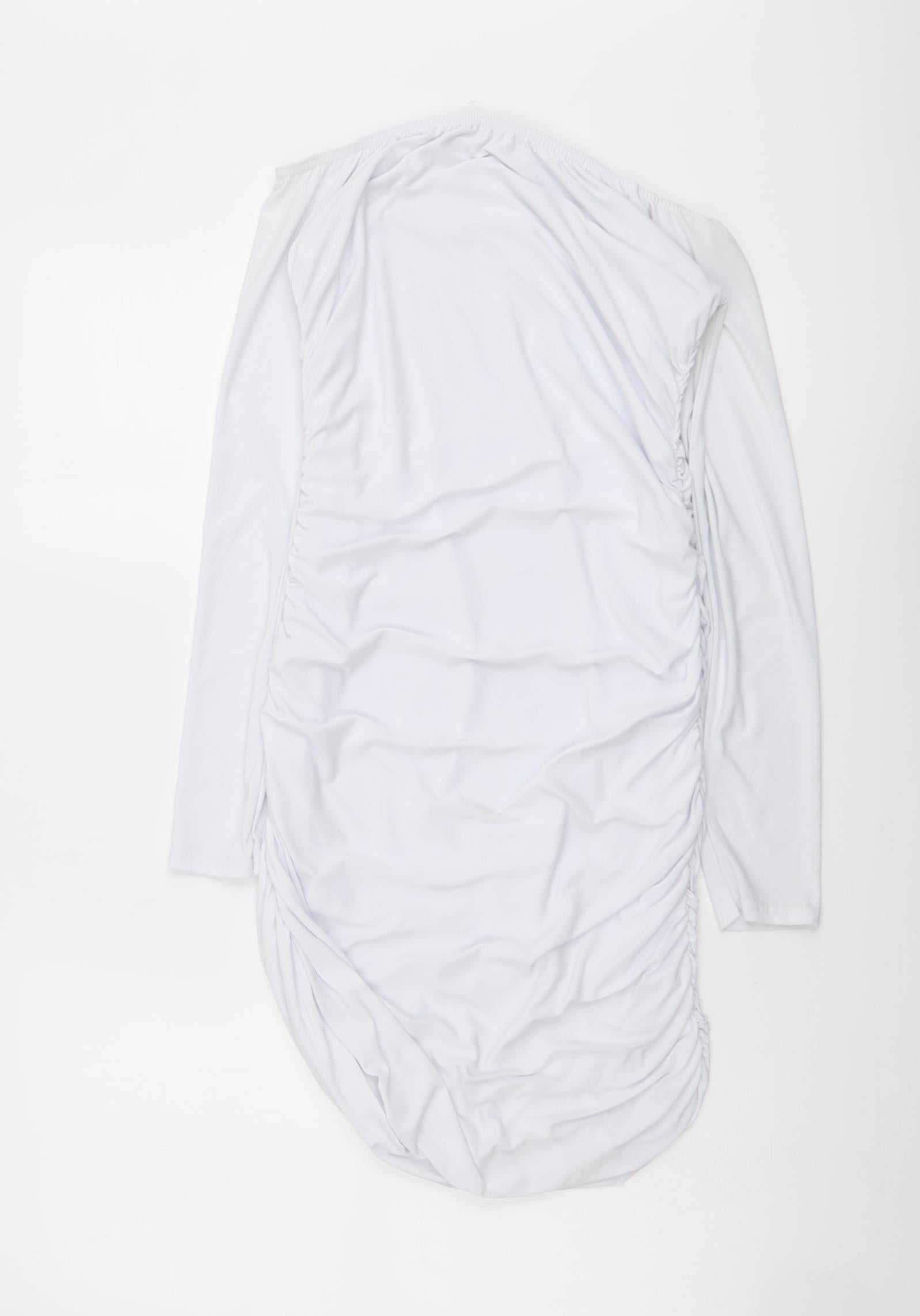 Womens White Polyester Bodycon Size 10 Off the Shoulder Pullover