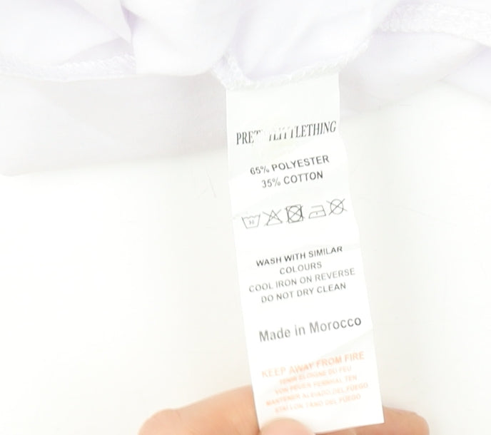 Elevate your wardrobe with this stylish PrettyLittleThing Women's White Puff Sleeve Cropped Blouse. Crafted from a blend of 65% polyester and 35% cotton, this top offers both comfort and breathability. The cropped style with a trendy off-the-shoulder neckline and slim fit adds modern flair to your ensemble. Perfect for spring and summer, this blouse is ideally suited for both casual outings and party/cocktail occasions. The long puff sleeves with a sleek zip closure ensure a secure and stylish fit, while its solid white colour offers versatility to pair with any bottom. In brand new condition, this blouse presents an excellent opportunity to expand your collection with a modern touch. Easy to care for, machine washable for your convenience. Don’t miss out on this opportunity to own a fashionable piece from PrettyLittleThing at an affordable price. Add it to your cart today and enjoy a chic addition to your attire.